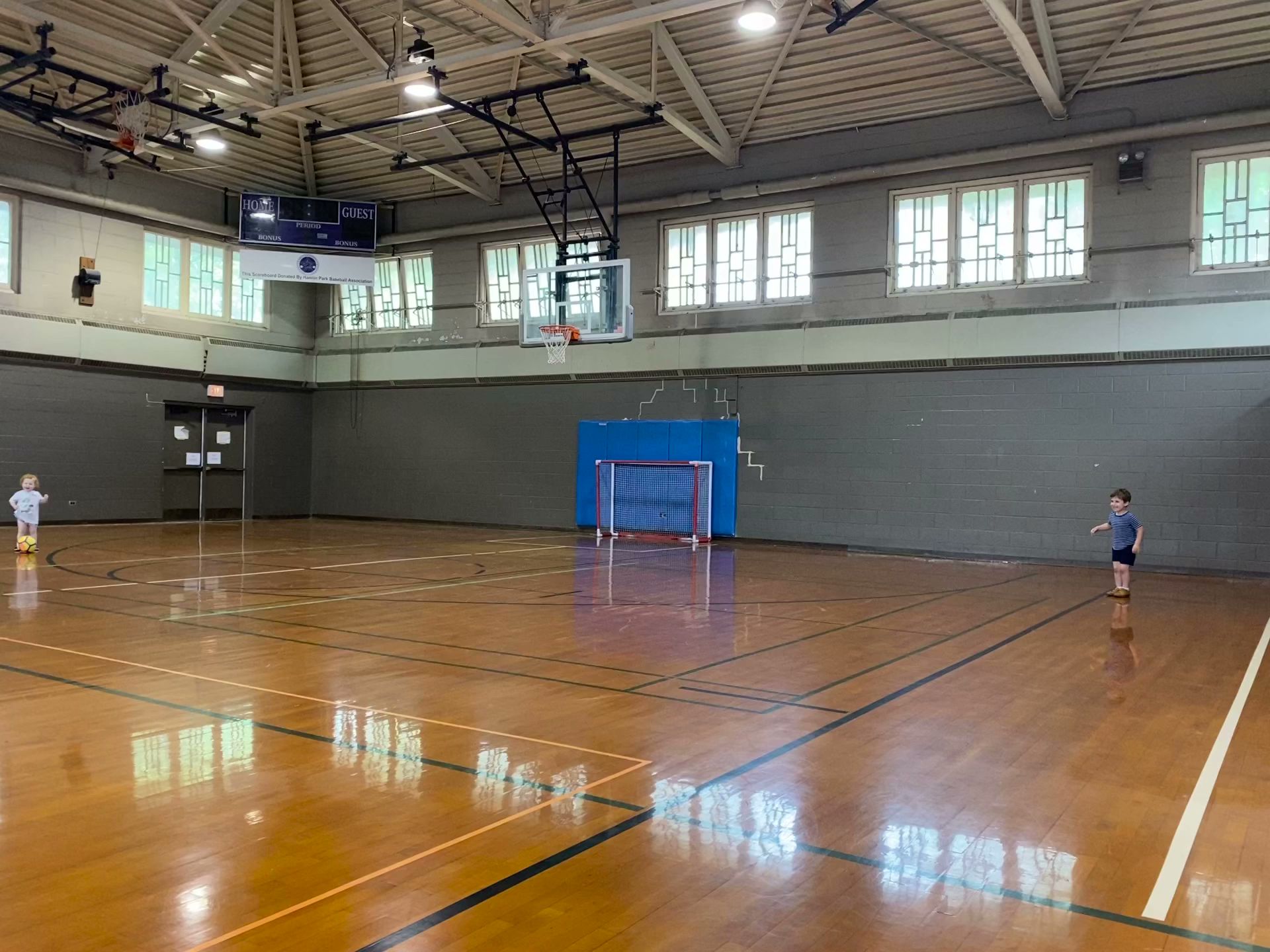 Outdoor pool, two indoor gymnasiums, baseball fields. Basketball courts, lawn, etc. We enjoyed our indoor soccer class with Coach Daniel! Thanks for hosting!