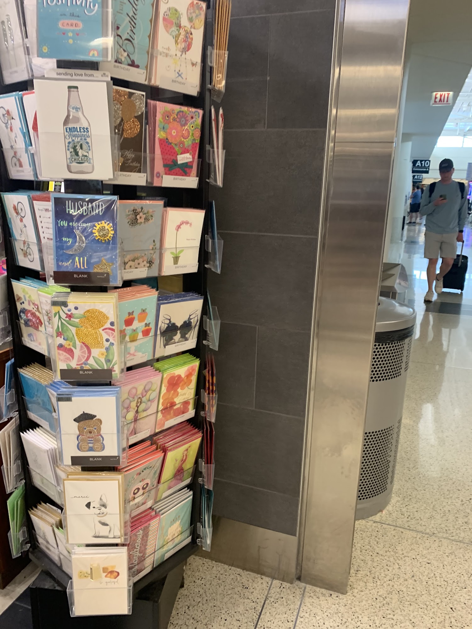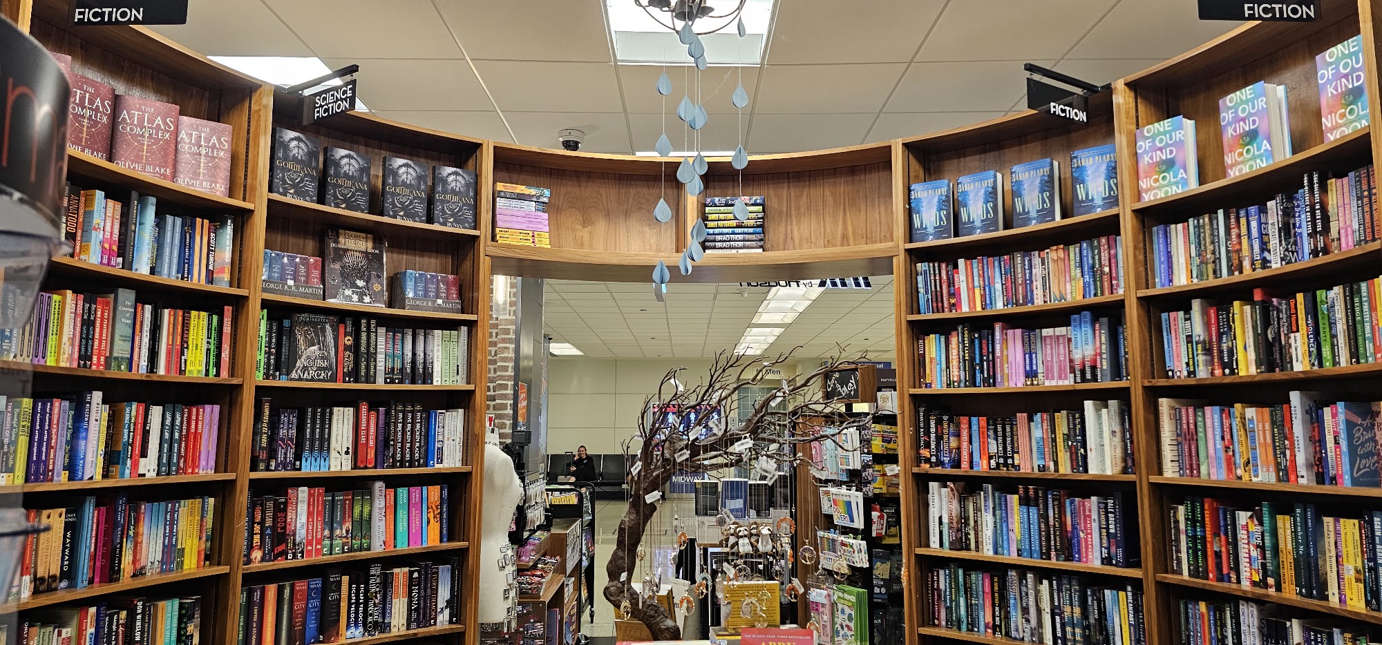 A strikingly setup bookstore. It carves a book nook in the mundane architecture of a very mediocre airport. A standout with an impressive selection of sci-fi novels.