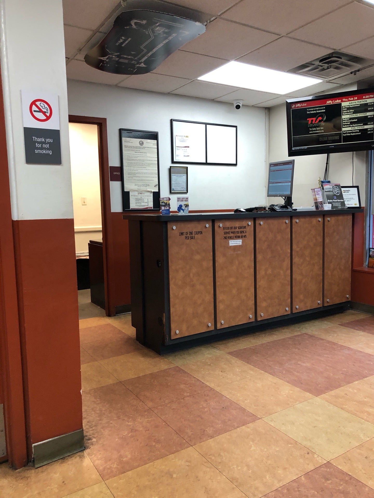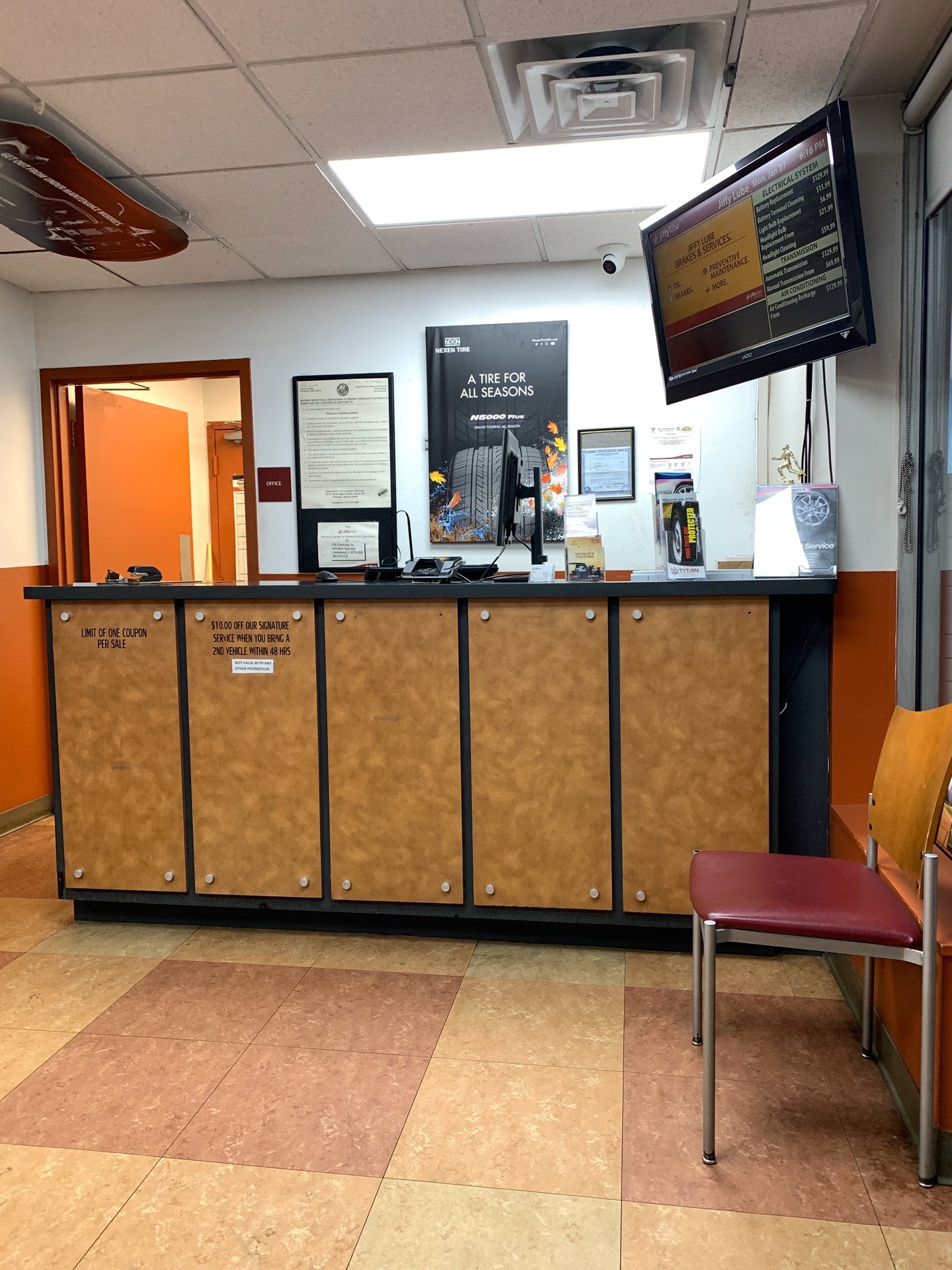 Excellent place took my car with my own oil and very fast service guys were polite thanx.