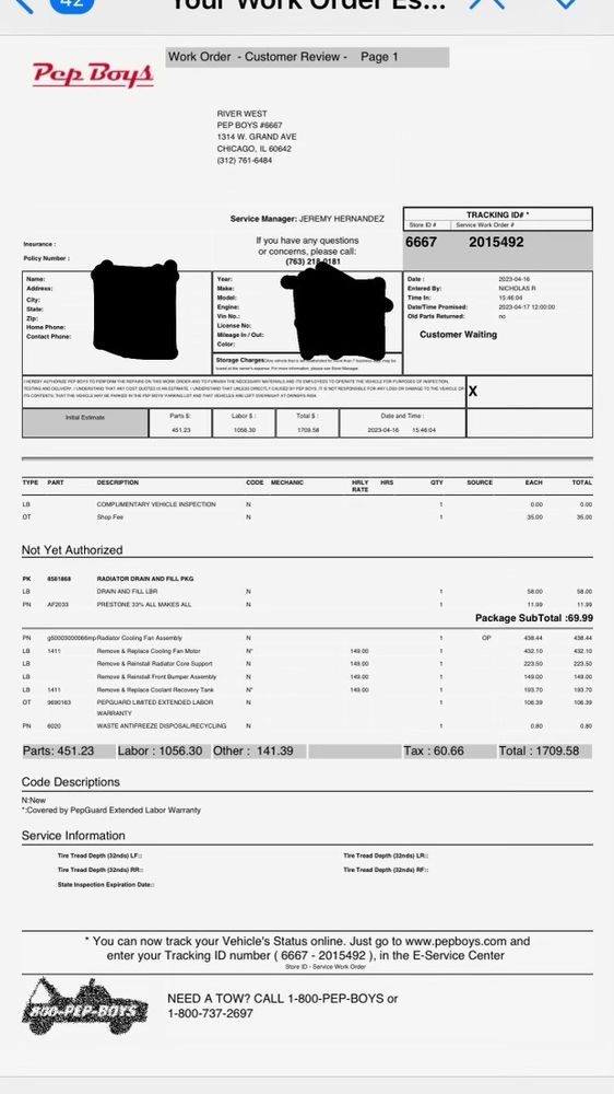 Mike was awesome - Car running very well. In a world were customer service has died, It is wonderful to find someone that has awesome customer service skills. Mike is a gem and Pep boys is lucky to have him!