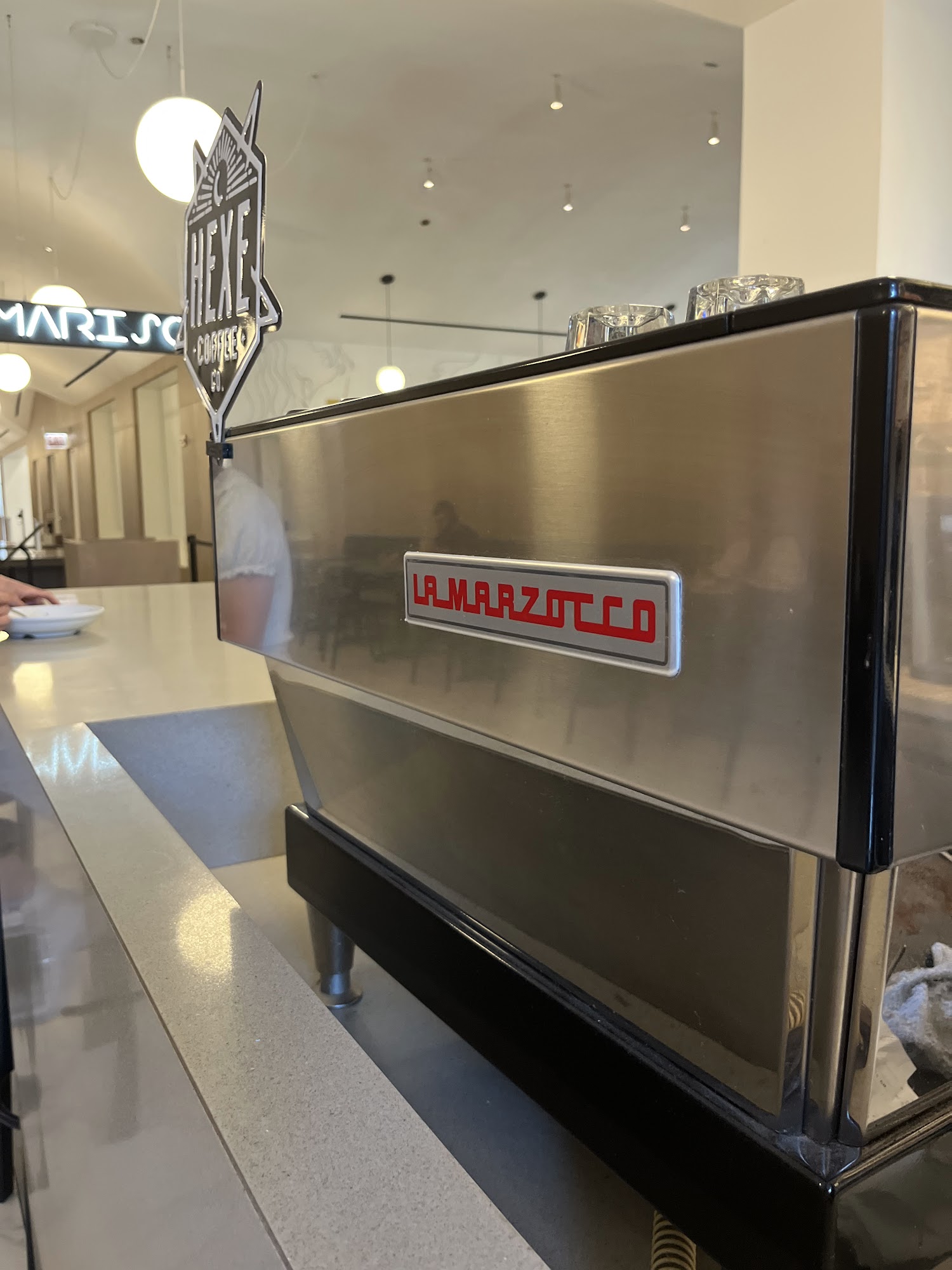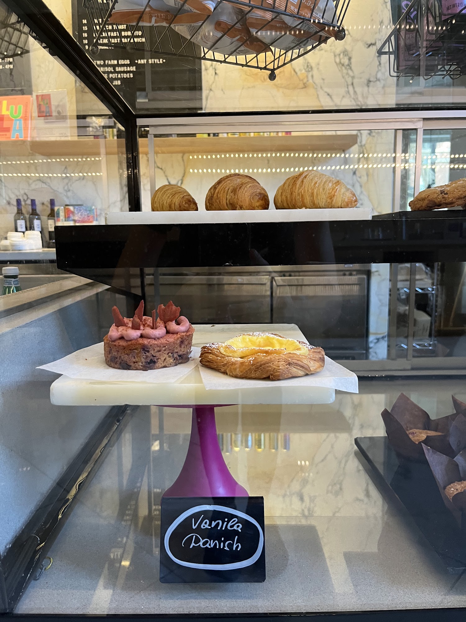 Cortado ? a nice specialty coffee. Staff member was very nice. A shame you can only get takeaway cups from the cafe - though we’ve found this in a lot of places in the US - the coffee deserves better than a paper cup!