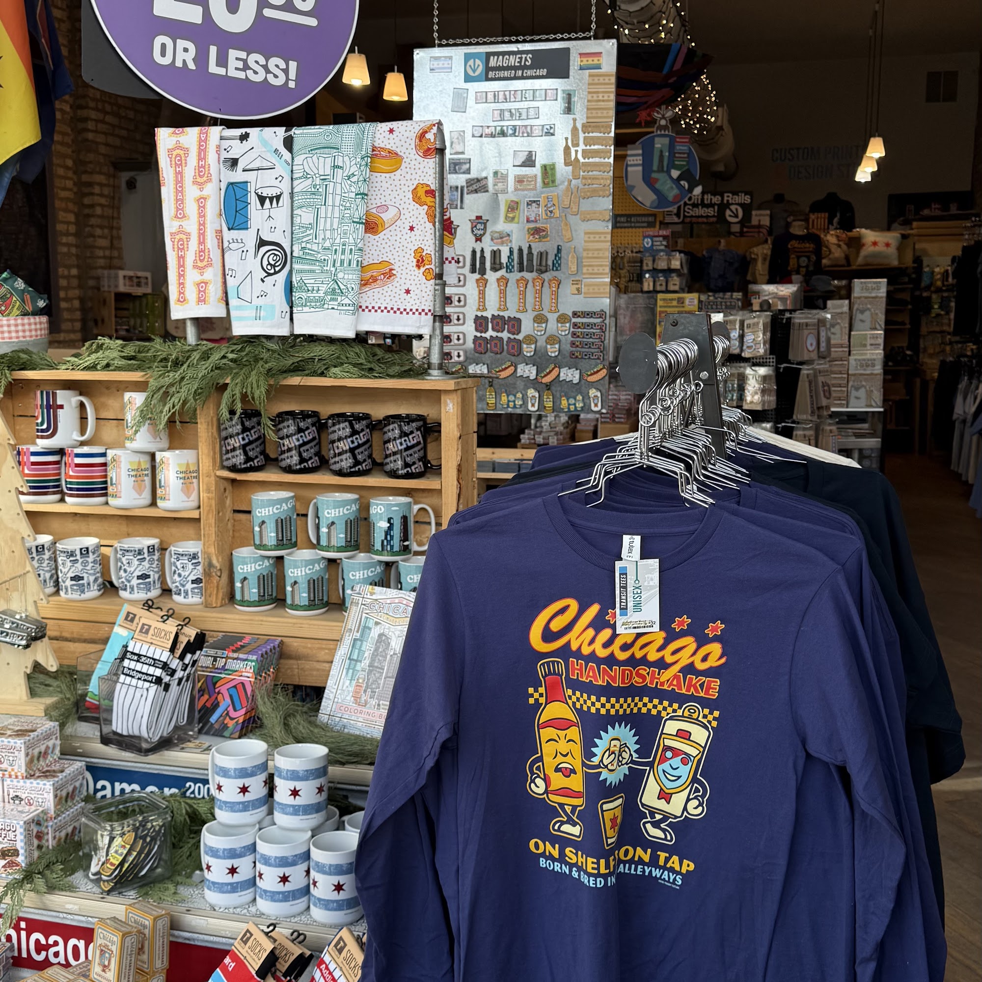Great spot for Chicago themed and transit themed gifts, huge variety! Little pricey for some items but clearance section is large and very high quality things. Recommend