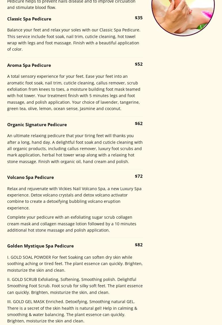 Welcome to Vickies Nail Spa where customers come first and your comfort and safety are our top priority. At Vickies Nail Spa, all our metal tools are cleansed after each client and cleansed thoroughly each day. We are using the best EPA-grade disinfectant solutions and the top hospital-grade heat sterilizers. All the treatments take step-by-step with strict implementation of sanitation by the IDFPR guidelines to ensure our clients’ safety. Our goal is to provide the most extraordinary customer services in Nail Care, Spa, Facial, and Wax treatments. Vickies Nail Spa provides a comprehensive range of services designed to refresh the mind, relax, body, spirit and enjoy. Our staff is highly experienced, licensed, professional and friendly.
