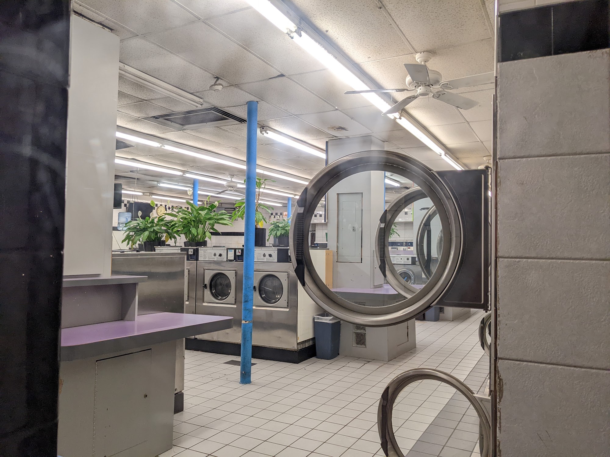 Super clean inside and friendly staff. I came to wash my queen comforter as my dog threw up on it and my washer couldn’t fit it. I left my comforter and came back :) overall i had a great experience and would def come back !! Comforter is also super clean and stains came out!! :)