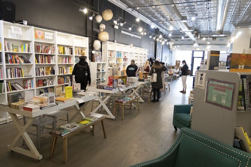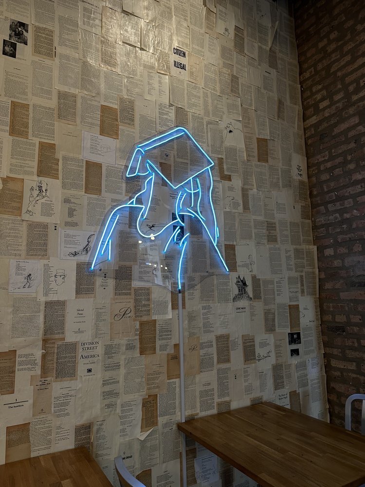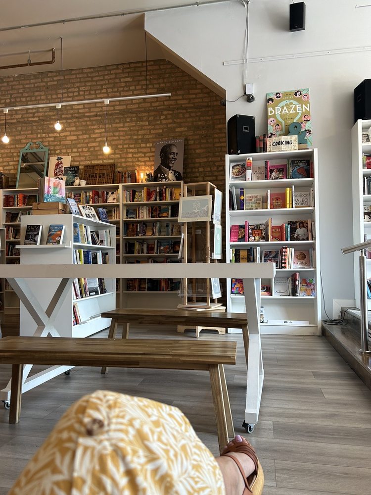 This is such a great idea. You can have a drink and browse their stack. It's very cool with a variety of books. Also, they are open to bringing in new authors, too. Definitely, another cool local Chicago bookstore.