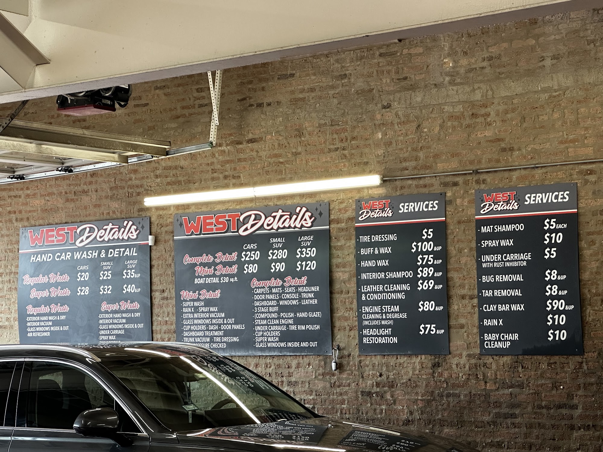 West Details is highly recommended for its top-quality car cleaning services. Customers praise the staff for being quick, caring, and thorough, often mentioning how their cars look brand new after the visit. Many appreciate the personal attention, from helping choose air fresheners to ensuring the vehicles are spotless. The service is consistently described as top-tier, with a reputation for efficiency and care that has lasted over 15 years. Customers value the good deals and early arrival is suggested to get the best offers. While most reviews highlight excellent results, some mention areas for improvement, such as better drying of SUVs and attention to water spots on mirrors and license plates. The vibe in the waiting room is described as pleasant, and the staff's hardworking attitude makes the overall experience enjoyable. Overall, West Details offers a thorough, friendly, and reliable car wash experience that keeps customers coming back.