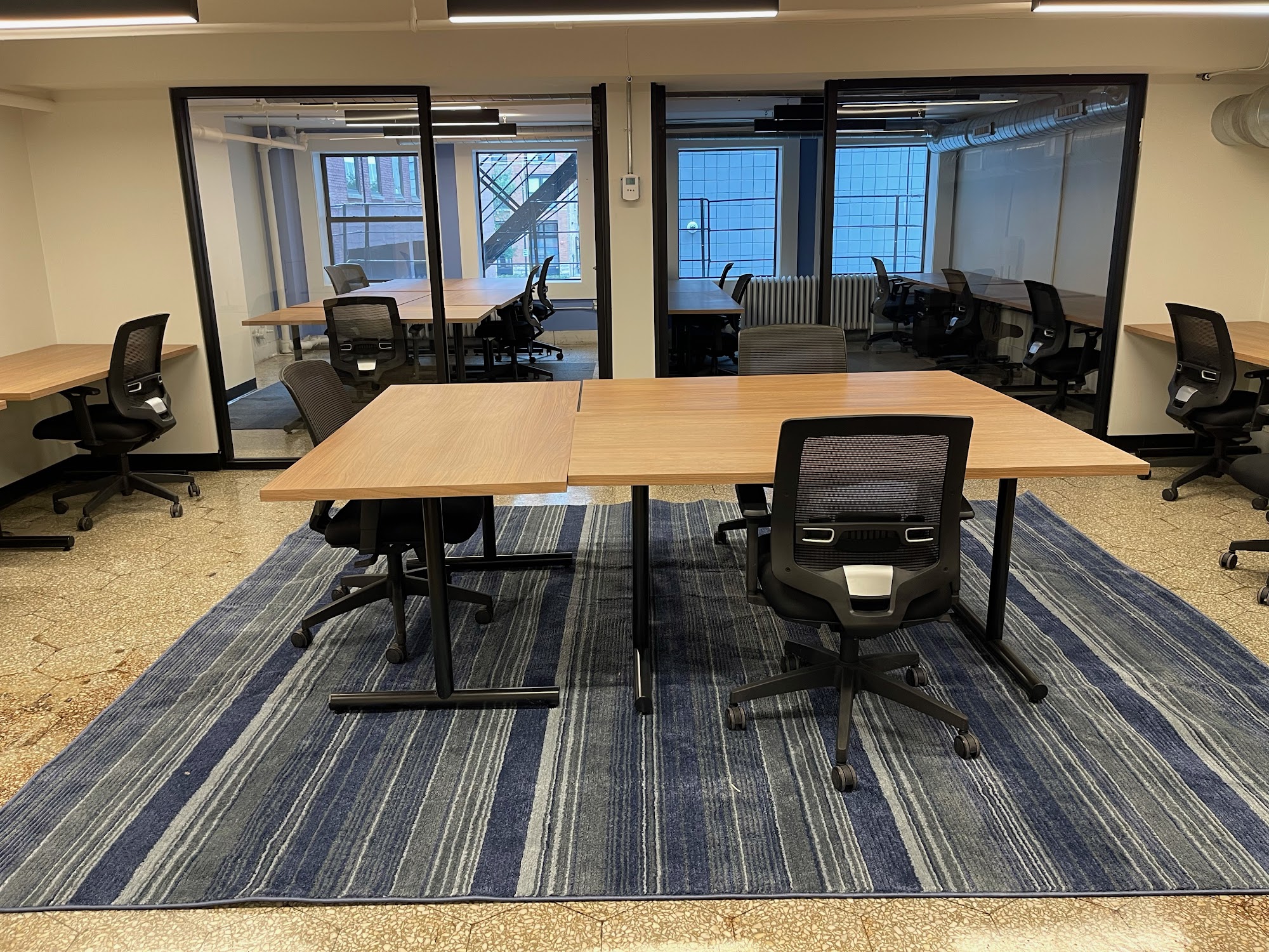 This edgy coworking space sits on the ground floor of the Burnham Otis Elevators building. This location features double level ceiling heights, urban exposed brick decor, and a range of glass enclosed offices and suites. The main lobby of the coworking space includes a full time doorman and the building is situated in between major commuter hubs Union and Ogilvie train stations. The West Loop is the heart of new company formation in Chicago and attracts a diverse range of talent due to its proximity to big tech and the best restaurant district in the city.