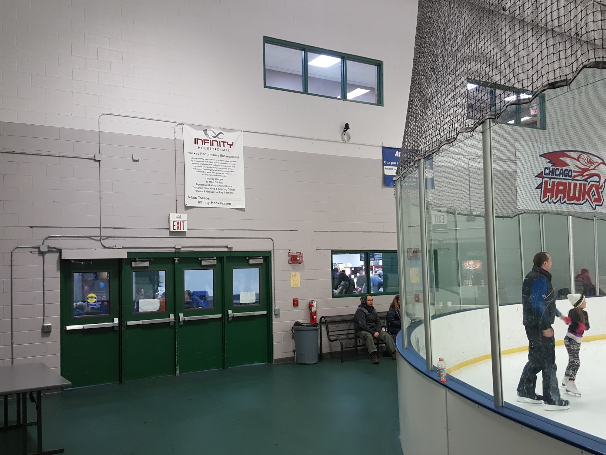 The snack shop is closed thats why the rink gets a 4. But there is a Culver’s one parking lot away. Legit soundsystem and scoreboard, great vending machines. The home of The Chicago Hawks.