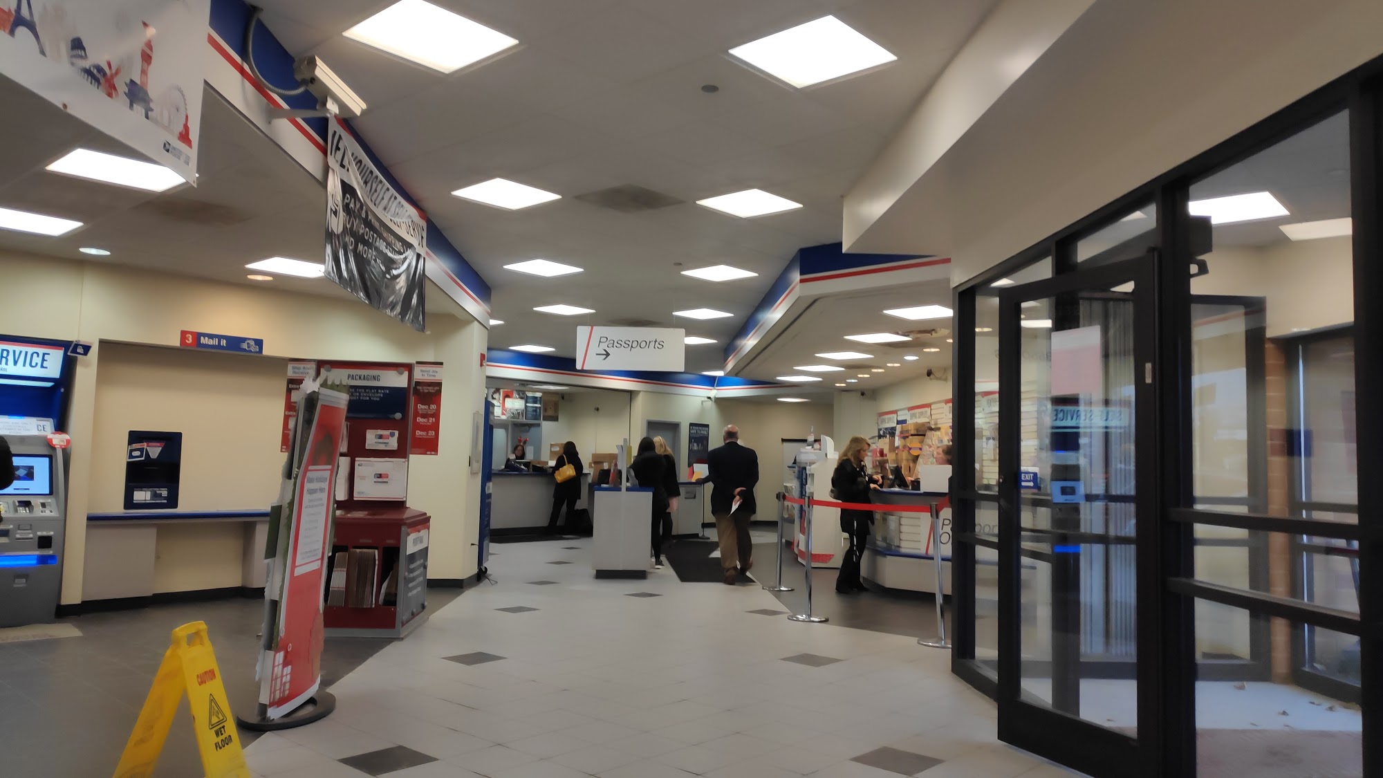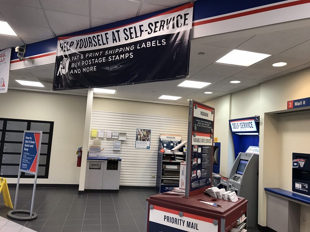 Disorganized mess. Customers all over to ship packages and the two employees are not able to run the register. Directing customers to use self service or go to a different post office.