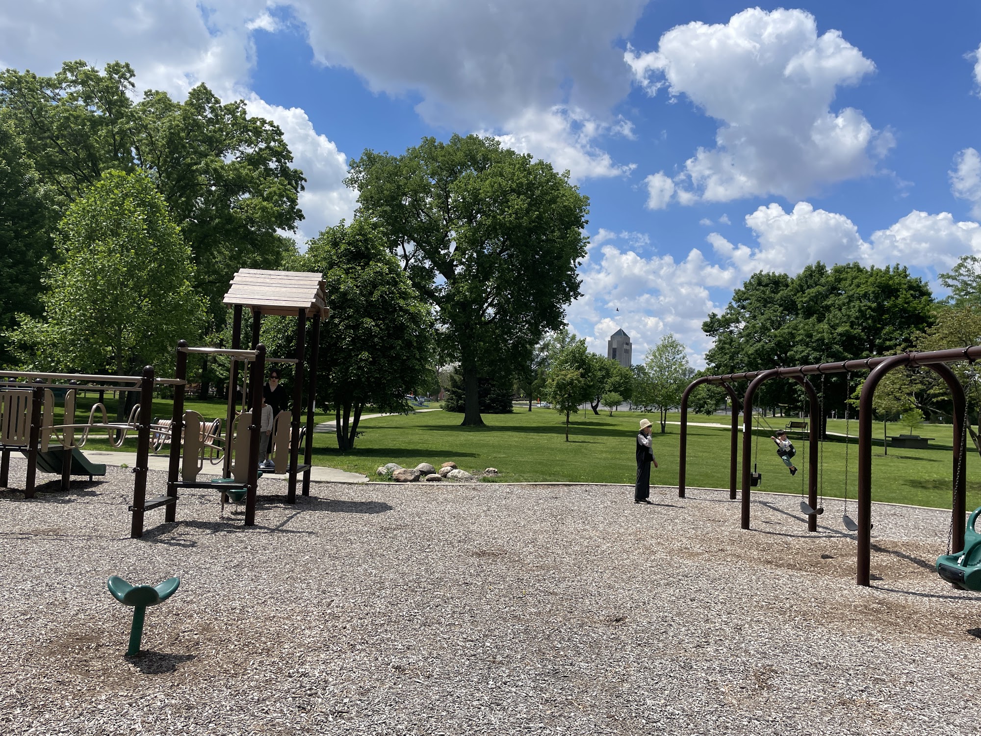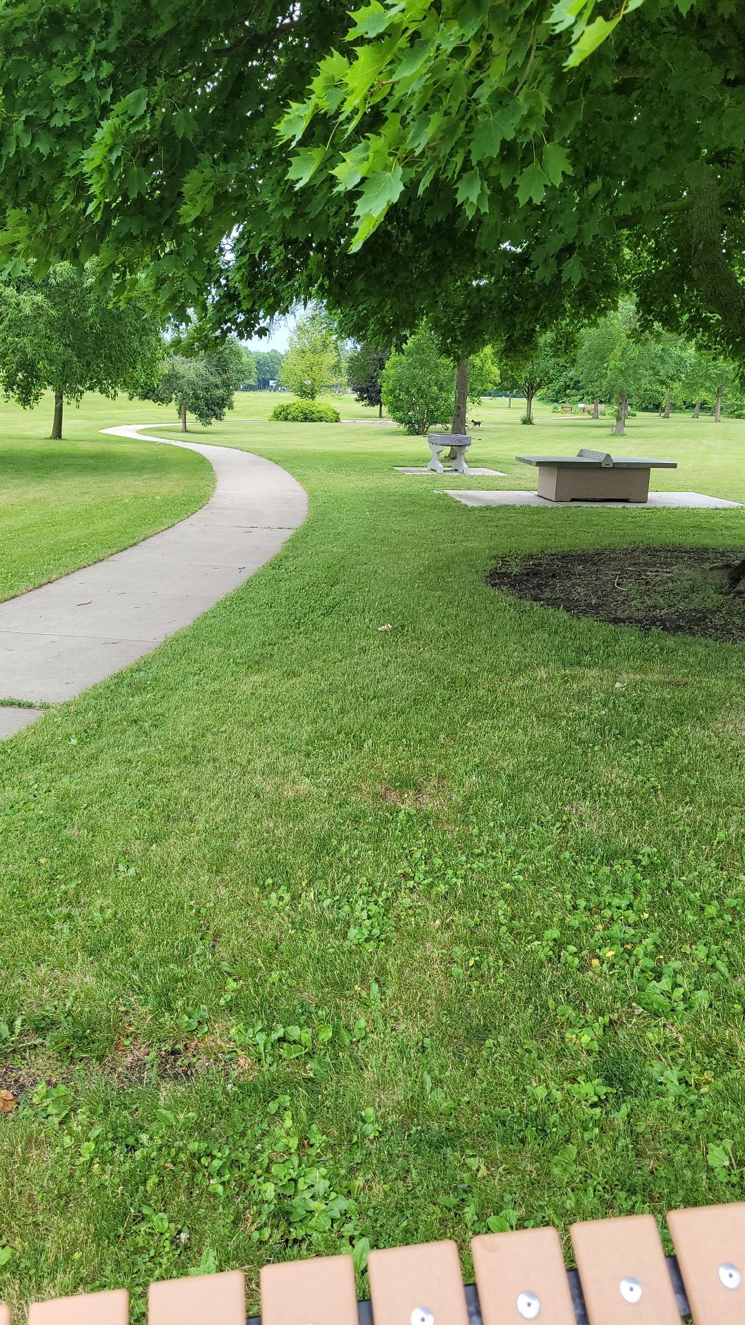 Love this spot! Only thing missing is a restroom! Pet friendly, a cool concrete table tennis table, concrete bag toss tables, benches, pavilion, basketball court, concrete foosball table, long paved walking path around and beyond the playground. The playground itself is very cute! Most of the seats are in shaded areas.... read full comment