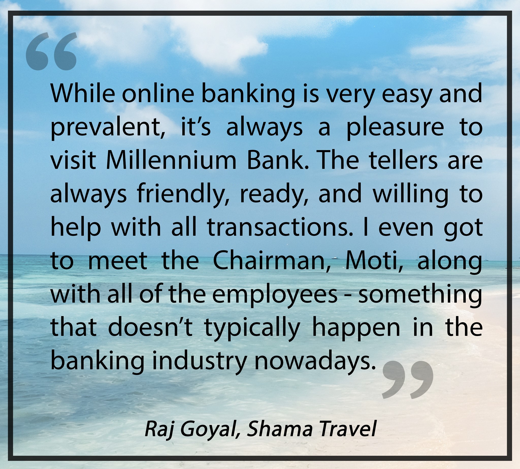 The best bank I ever dealt with in my entire commercial real estate. Quick, fast and get the work done. Thanks for Sarah, David, Raju and Salil.Highly recommend to do business.Commercial Real Estate Transaction done right.