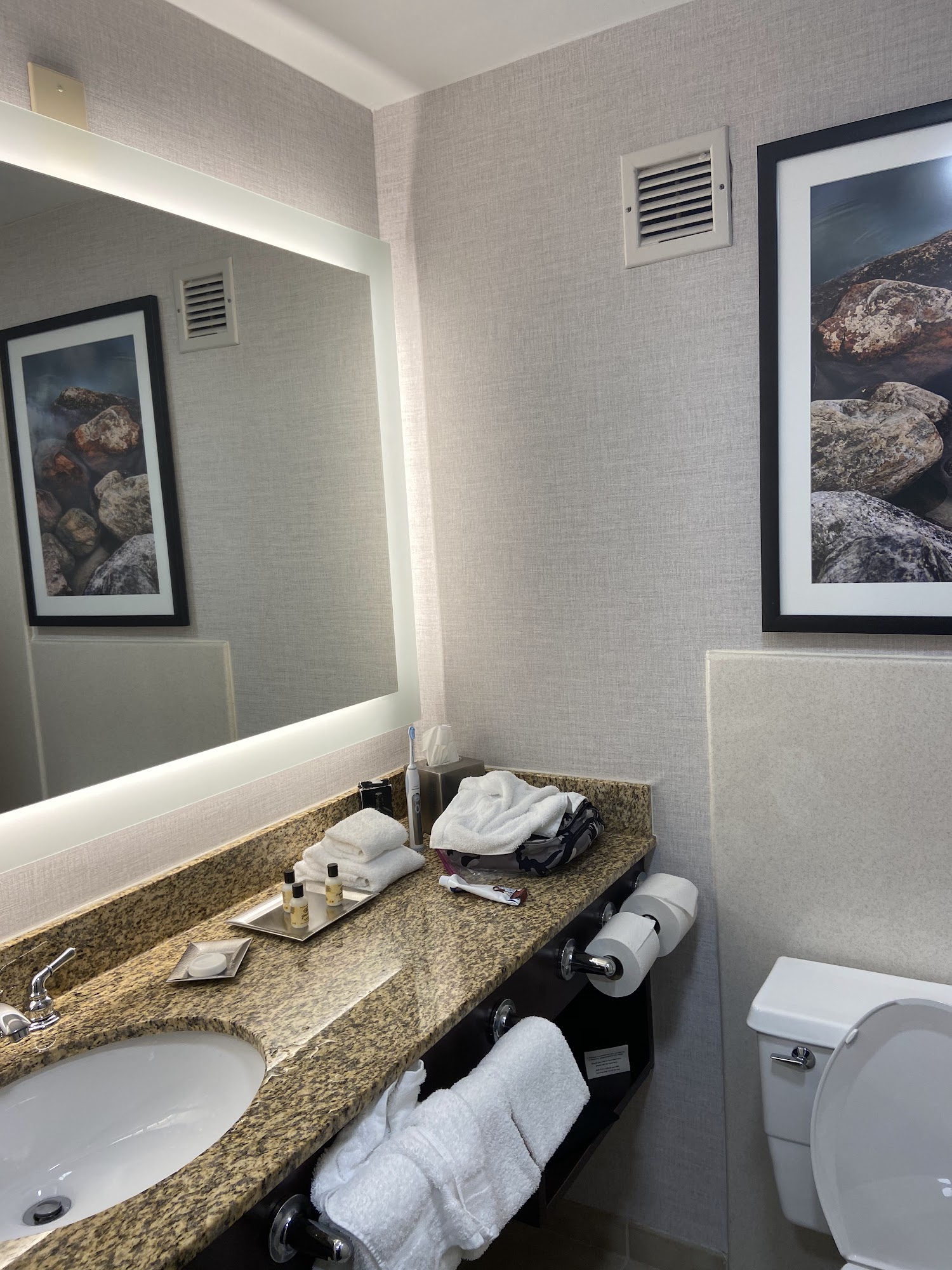The hotel is renovated nicely. The rooms are spacious. There's a good breakfast in the morning. The staff is professional and efficient. There's a nice shuttle service to O'Hare