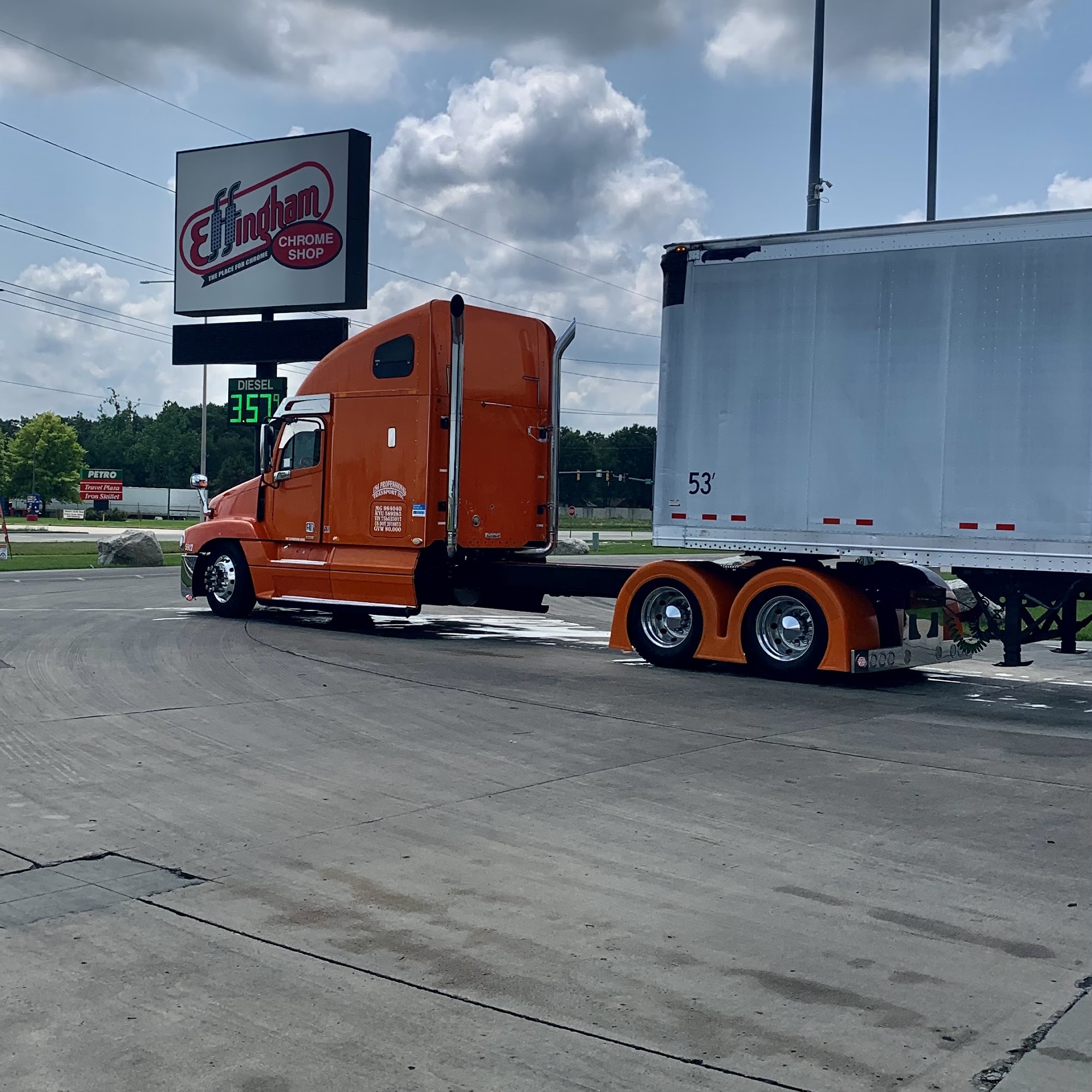 Effingham Chrome Shop is highly regarded for its excellent customer service and competitive pricing. Customers appreciate the friendly staff, especially Ed and his team, who go above and beyond to help find the right parts and provide a positive shopping experience. The shop offers a variety of truck parts, including hard-to-find items like tiny lights, which customers had been searching for weeks. The service is personalized, with staff allowing customers to check parts on their trucks before purchase, a rare gesture these days. The shop is busy, with trucks lined up in both lanes, demonstrating efficient operations and high demand. Amenities such as clean showers are available, though some customers wish for additional features like shower caddies and extra towels. Overall, Effingham Chrome Shop is known for its great service, knowledgeable staff, and a well-stocked inventory, making it a favorite stop for truckers traveling down I-57.
