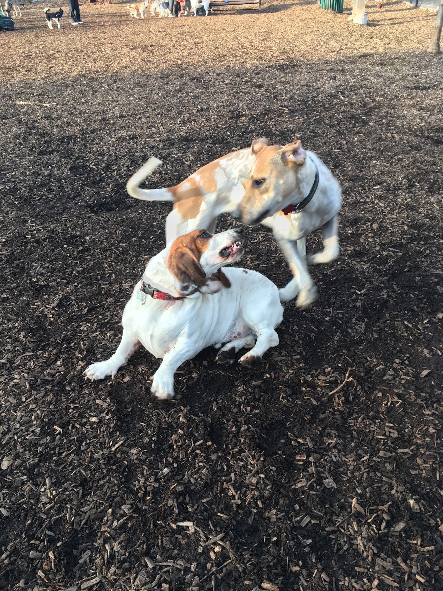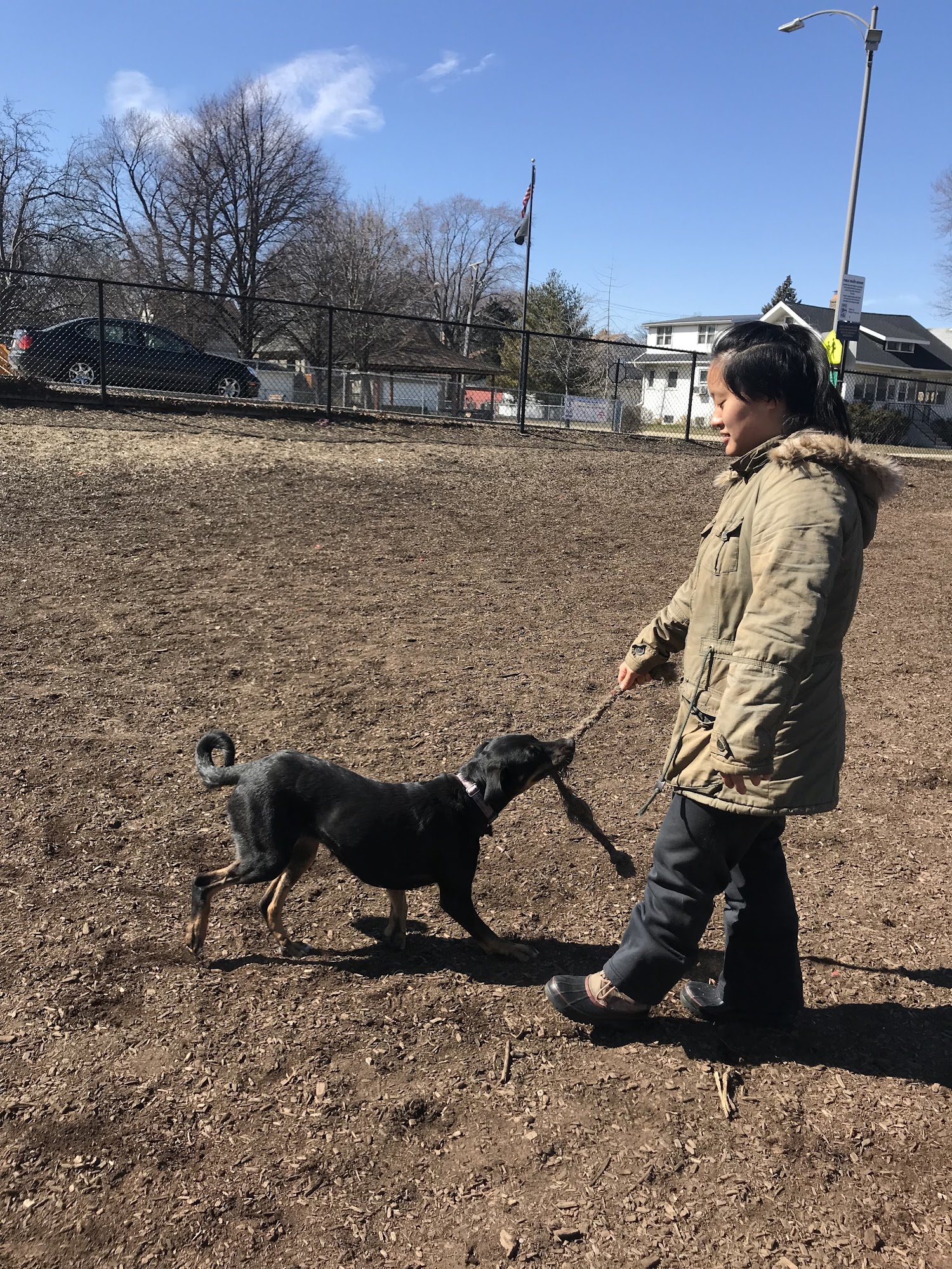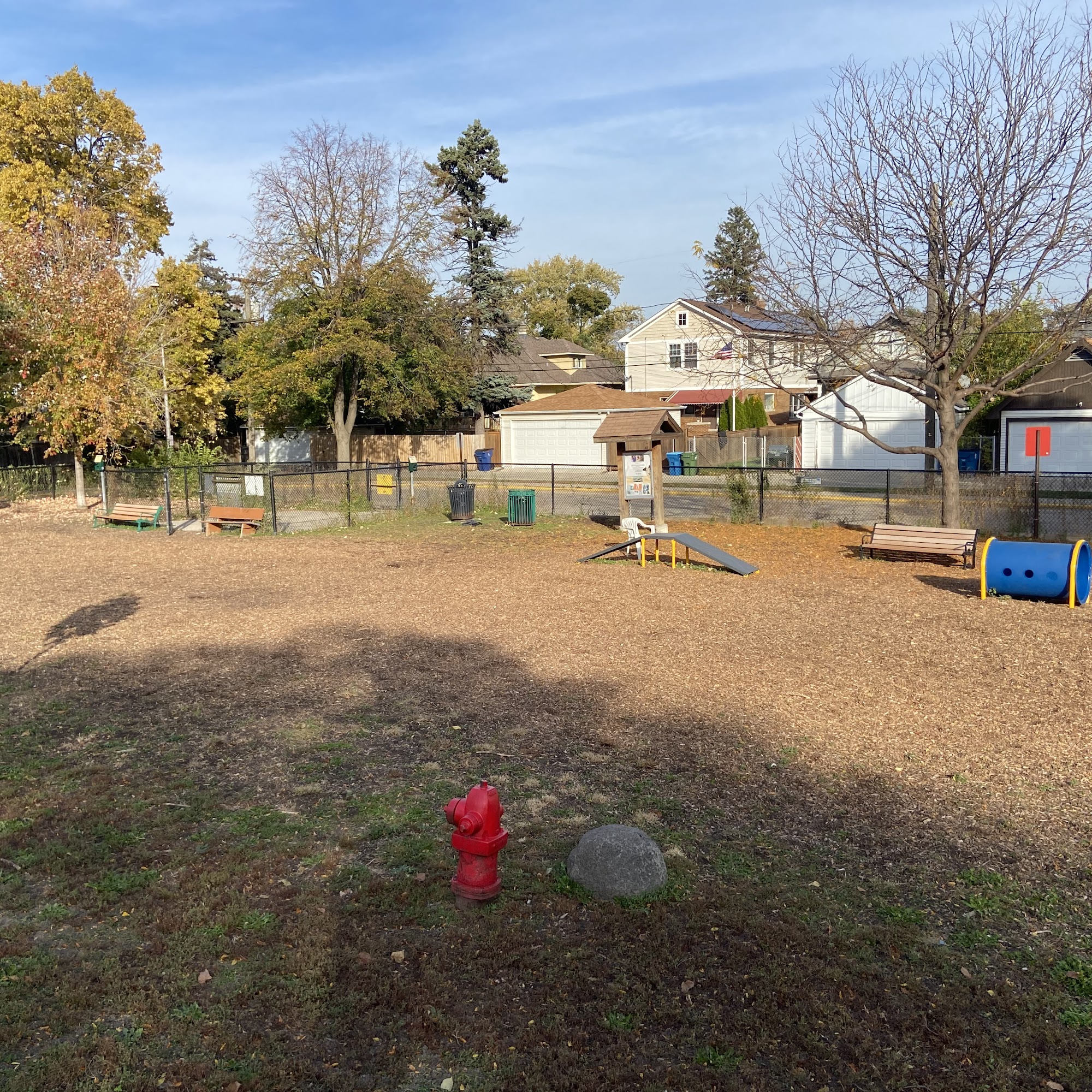 Forest Bark Dog Park is a well-maintained and clean outdoor space for dogs to play and socialize. The park is fenced in, providing a safe environment where dogs can run freely without the risk of running off. It features a long, spacious area suitable for large dogs to get plenty of exercise before needing to turn around. There are water stations, dog waste bags, trash cans, benches, and picnic tables, making it convenient for owners to relax and keep the park tidy. The park is popular among a friendly community of dog owners who often chat while their pets play together, creating a welcoming atmosphere. Access to the park requires a small annual fee and a key to unlock the gate, making it a members-only facility. This system helps keep the environment safe and exclusive for registered users. Nearby, there is a public park with a big "no dogs allowed" sign, offering an alternative for visitors seeking a dog-free area. Parking is available on the street, and the park’s location next to the highway offers easy access. Some reviews mention that the park has obstacle course features and a water fountain, which add to the experience. However, the ground is mostly dirt, which can get muddy during winter. Overall, Forest Bark Dog Park is highly recommended for dog owners in Forest Park who want a clean, friendly, and well-equipped place for their dogs to enjoy.