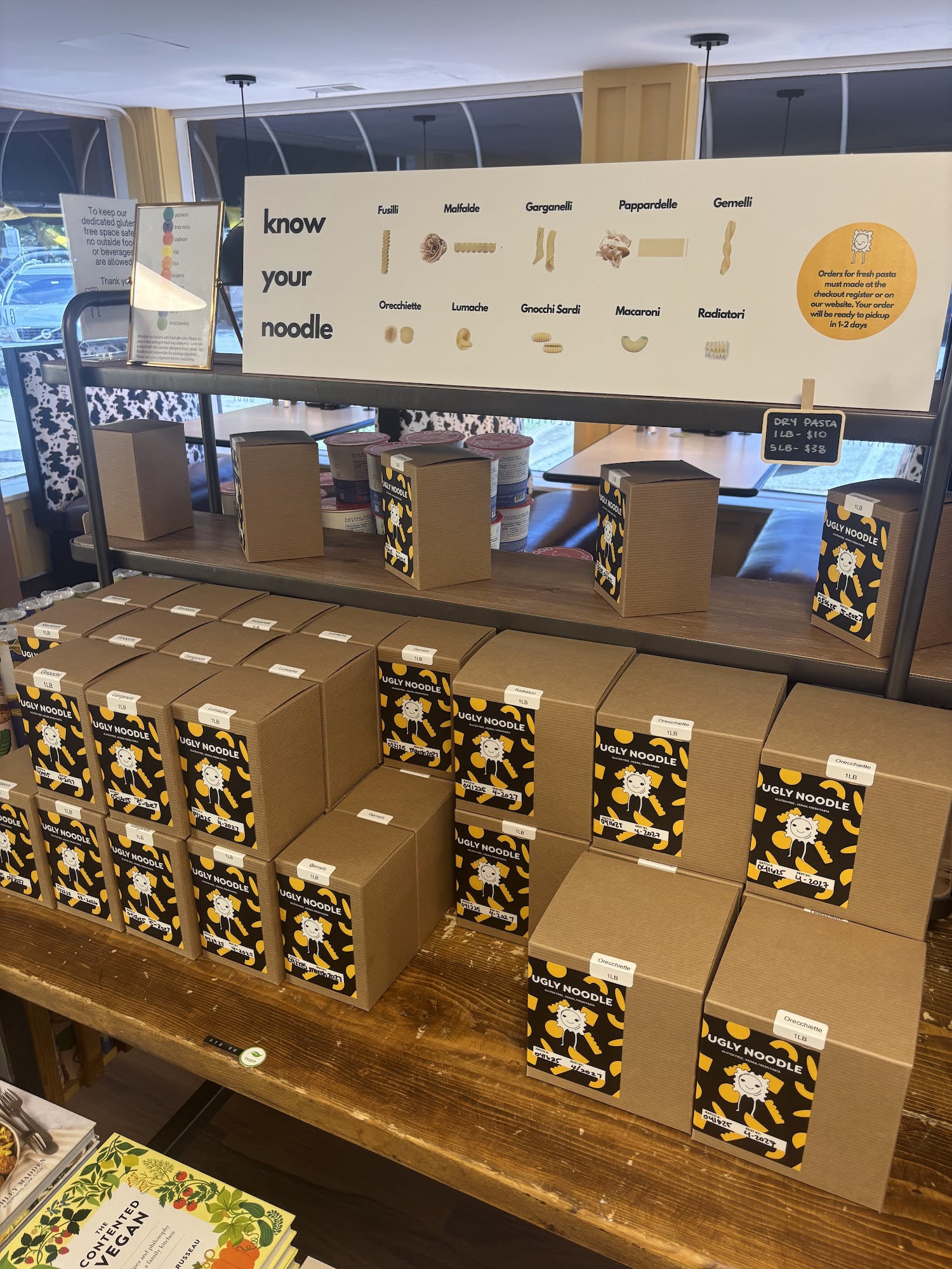 Ugly Noodle is a charming gluten-free pasta shop and deli located in Geneva. It offers fresh, handmade Polish and Italian pasta made from a rice flour blend, ensuring the products are free from wheat, barley, rye, and gluten. The store features a small, clean, and welcoming atmosphere with limited seating, making it a cozy spot to enjoy a meal or shop for gluten-free and vegan foods. Customers can choose from a variety of options, including paninis, dumplings, and pre-made foods to take home. The kitchen is entirely celiac-friendly, and staff are friendly and knowledgeable, providing peace of mind for those with nut allergies or other dietary restrictions. In addition to fresh pasta, the shop sells gluten-free shelf-stable products, merchandise, and even vegan cheeses. Overall, Ugly Noodle is a hidden gem for anyone seeking healthy, gluten-free, and vegan options in a cute, welcoming setting.