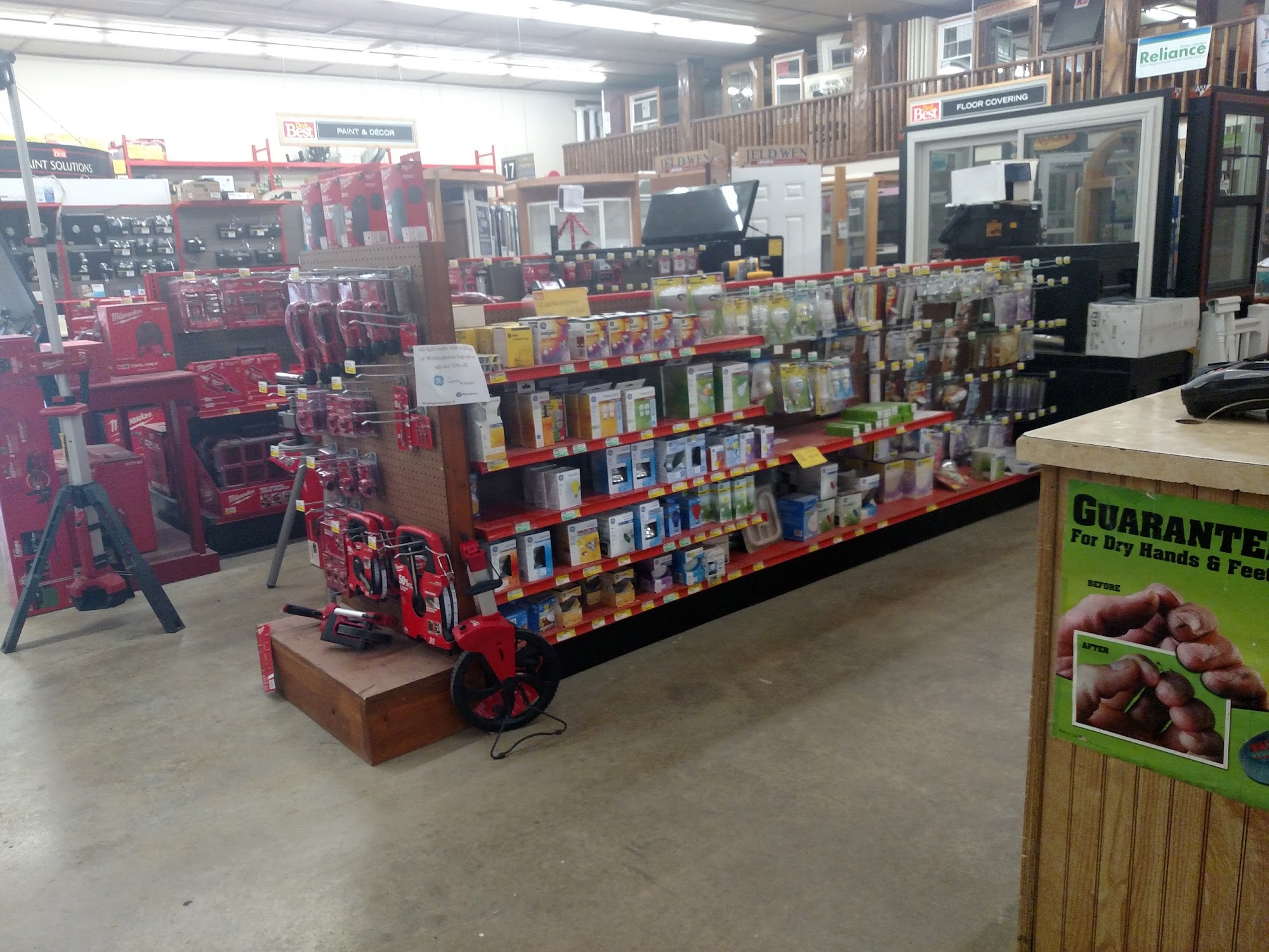 Has just about anything you need for a home repair, but prices are high due to its out of the way town its in and only big hardware lumber yard around