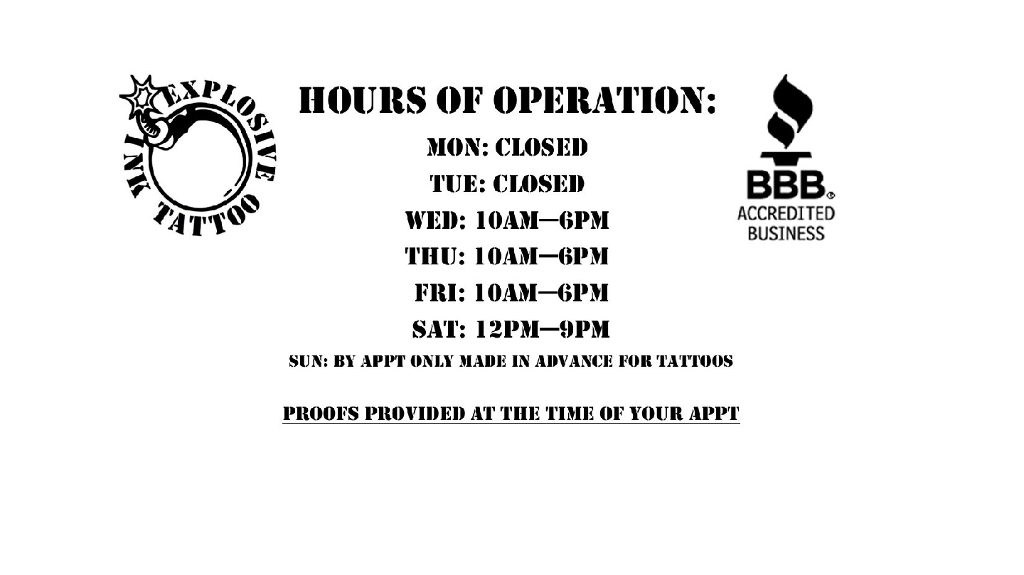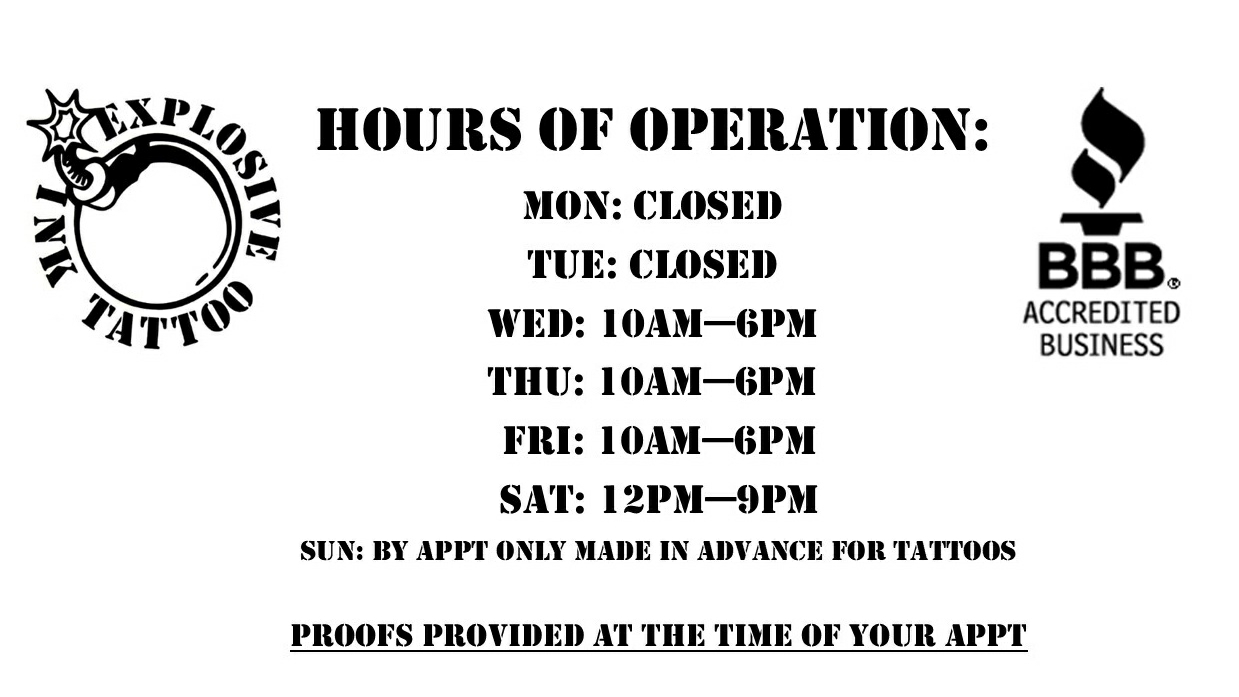 I’ve gotten four tattoos from explosive ink tattoo and they’re amazing! If anyone wants a new tattoo this is the place to go! They’re super helpful and understanding of what type of tattoos you want.