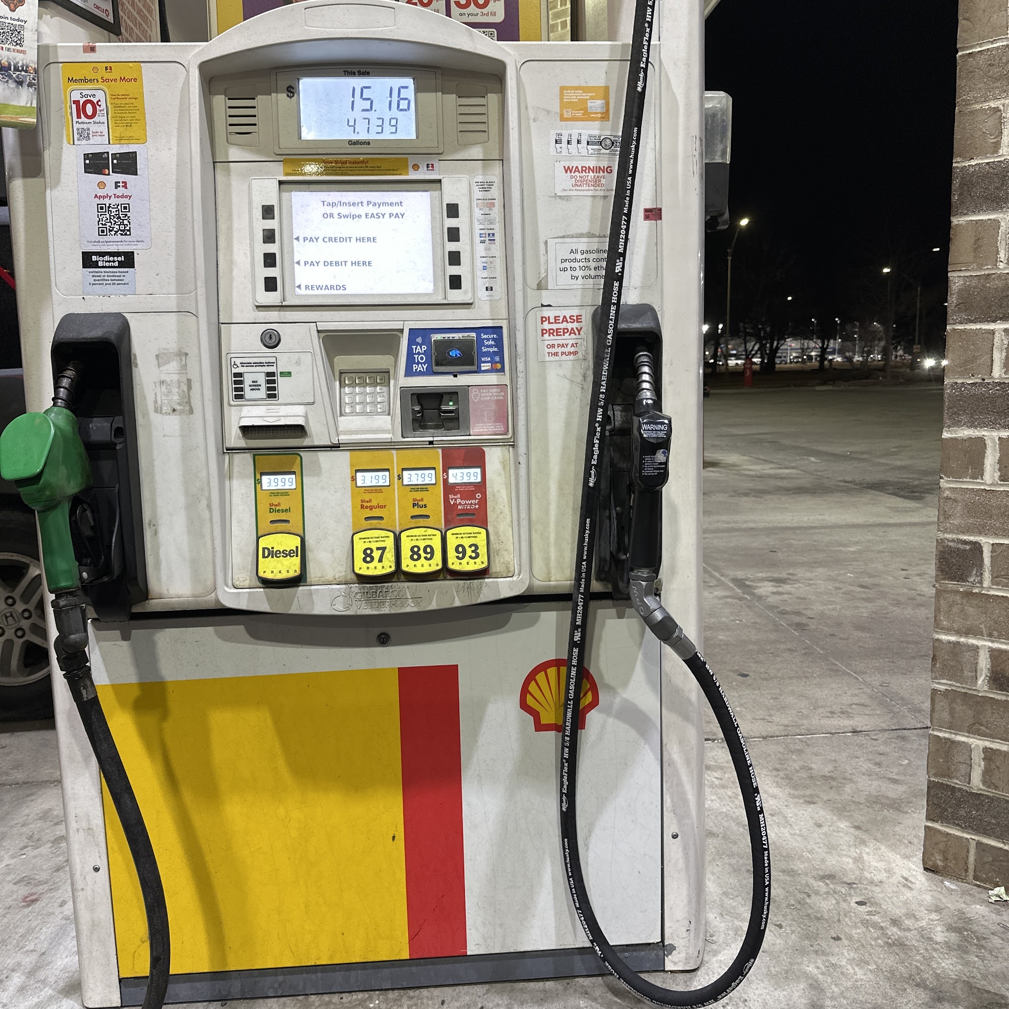 Touch screen on some of the pumps do not work bathrooms permanently closed very disappointing for what I expect out of a circle k / Shell station