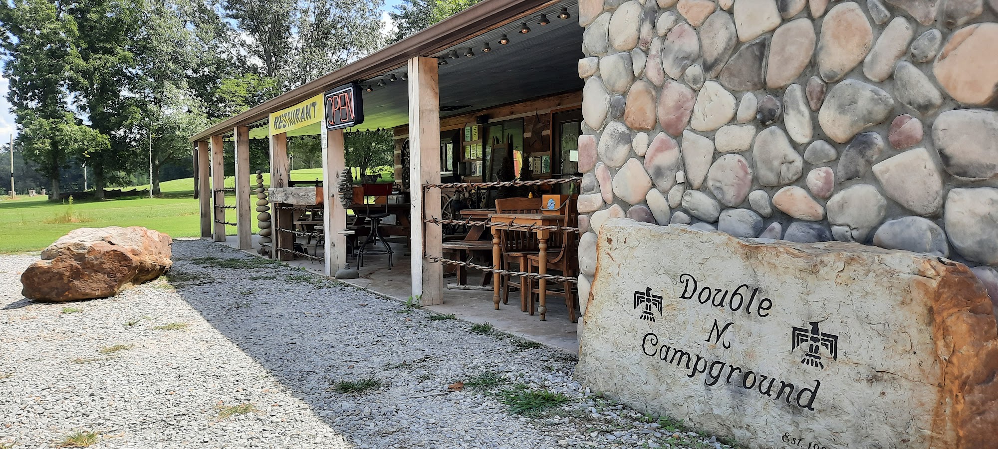 Double M Campground is an excellent and friendly campground known for its amazing and super friendly people. The owners and operators are great, making everyone feel welcomed, comfortable, and part of the family. It is a perfect place to stay while enjoying the natural beauty of the area, with several trails heading out directly from the camp and access to trailheads right from the campground. The campground has a wonderful restaurant with amazing food at great prices, including items like Hamburger Steak and homemade sides. A common complaint is that the restaurant is only open Friday through Sunday. The site has mostly permanent sites that seem well kept, along with stalls for horses featuring mats, though bedding is not provided. Bathrooms and showers look clean, if a bit outdated, and there are port o potties throughout. A small playground is located near the offices. While cell service is spotty, the main building has wifi. The camping fee may be cash only. A noted negative is that the camp is not very close to scenic areas like Garden of the Gods, requiring a drive of about 25 miles. Overall, it is a pleasant stay with nothing bad to say, and visitors report they will be back.