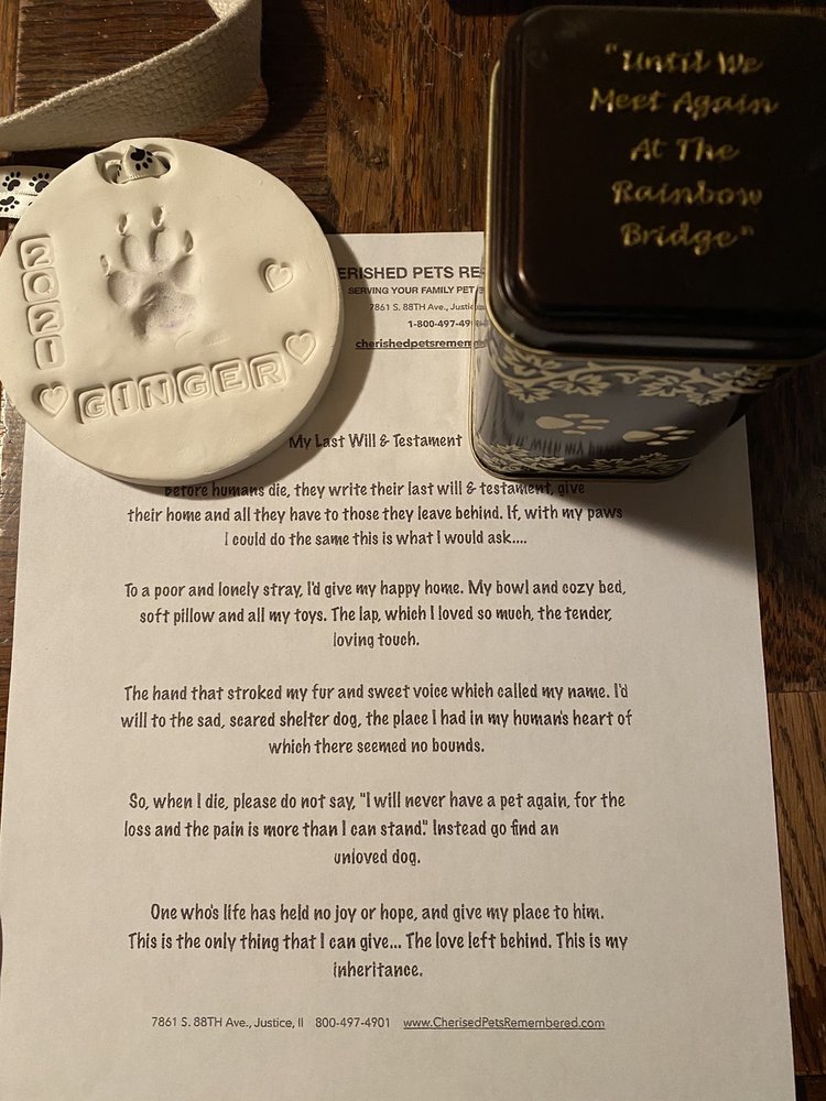 Great people understanding prices are good and willing to work with you fast droppedy dog this morning and for my dog back this afternoon this is better than the place i rook my previous dogs i love that they give u a urn with the price and u can keep.a.little piece of fur highly recommended