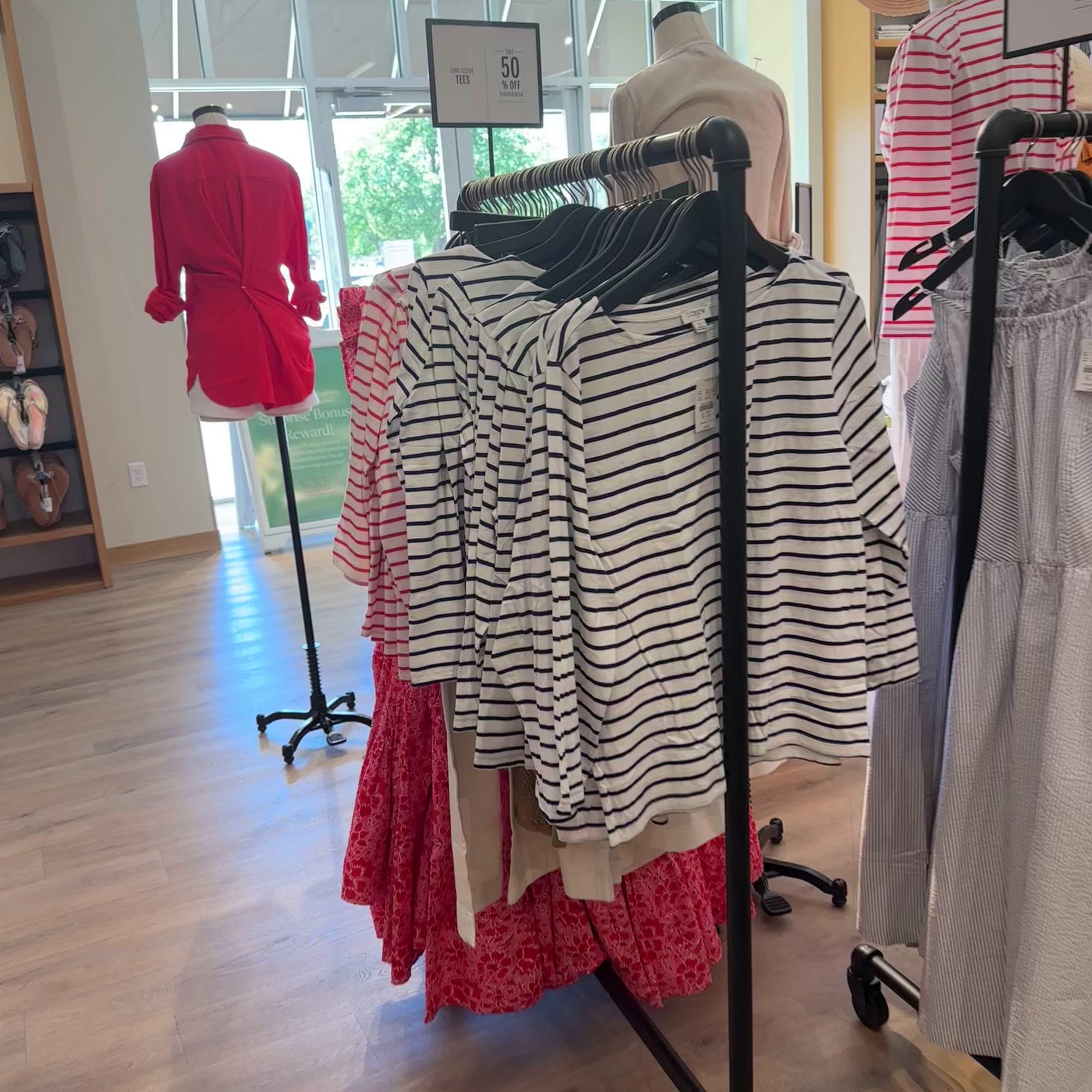 J.Crew Factory offers a great shopping experience with a clean and well-organized store. The staff is often incredibly friendly, attentive, and helpful, going out of their way to assist customers with finding the right items. Many employees demonstrate amazing energy and a great personality while multitasking during busy times. The merchandise is of great quality. While most encounters are positive, there can be rare instances where a staff member is perceived as less courteous. Overall, it is a nice place with a happy staff that makes shopping fun and easy.