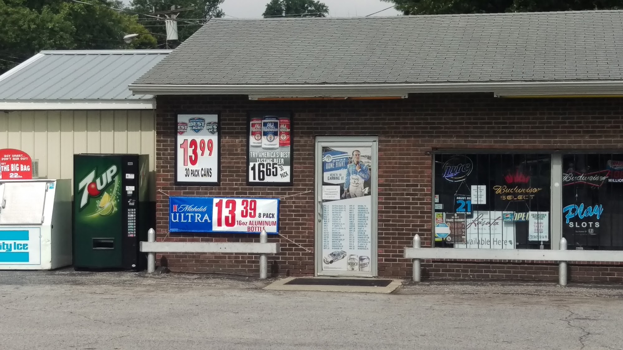 This place is a small town gem that appears to just be a liquor store but actually moonlights as a bar so u can sit and have a cold one or a mixed drink! Strong, cheap drinks, touchtunes music box and SLOTS! I won almost $200 the first time I came here! ??