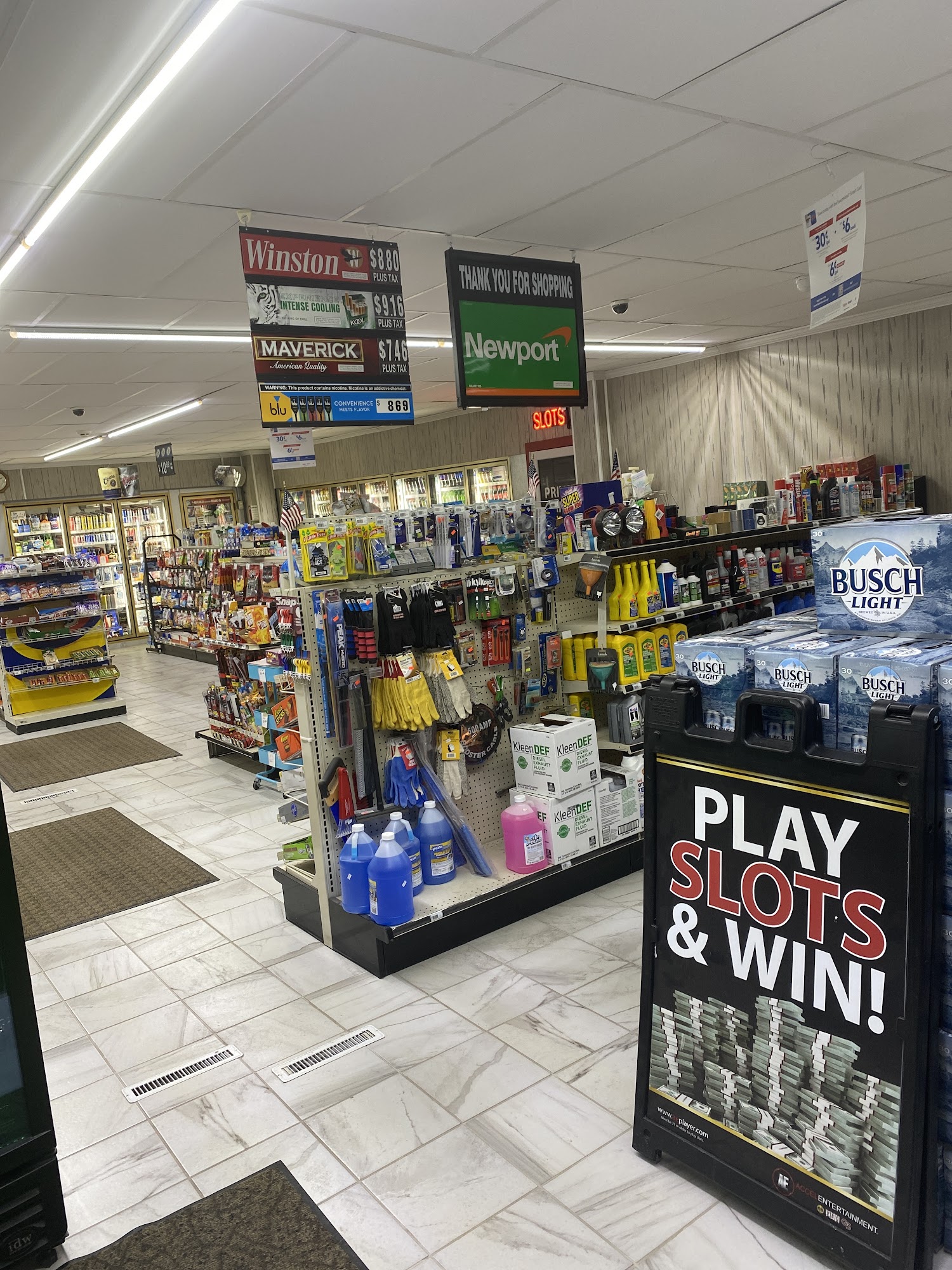 A NICE QUIET AND CLEAN GAS STATION ..IT ALSO OFFERS MACHINES TO PLAY .. HAD A FIRST TIME VISIT THERE AND I PLAYED THE MACHINES AND WON A FEW DOLLARS .. GOOD GAS PRICES AND CLEAN RESTROOM TOO.