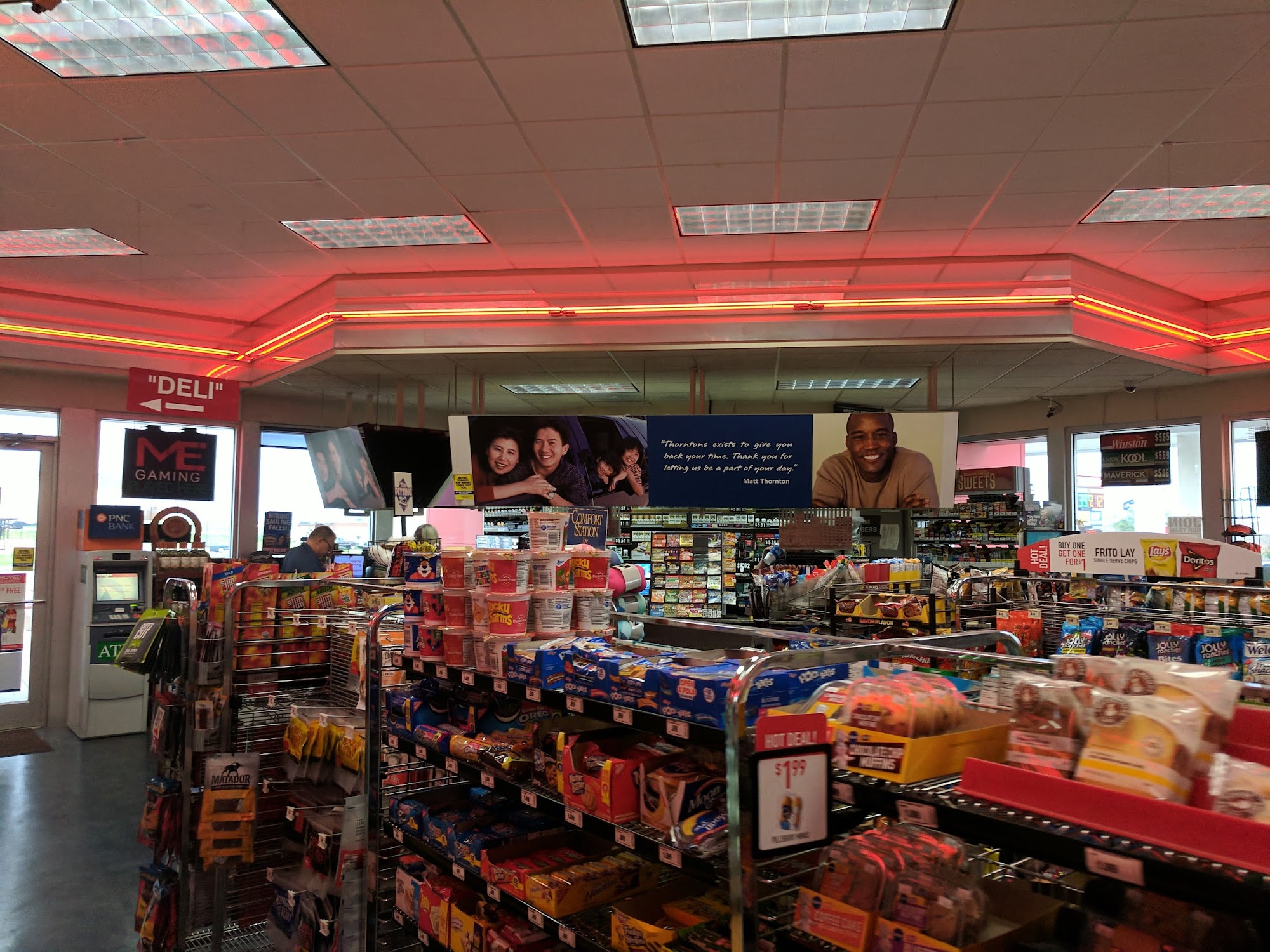 Thorntons, a vertically integrated company, operates fresh food, high-quality beverage, and fuel stores across six states: Kentucky, Illinois, Indiana, Ohio, Tennessee, and Florida. Located at 2903 Woodlawn Road in Lincoln, the company aims to be people's favorite place to stop when on-the-go and work. Thorntons is committed to giving back to the communities where its team members and guests live and work, with volunteers actively engaged in community service, humanitarian events, and fundraising projects. Customers praise the ample parking, clean showers and restrooms, and good quality fuel and food offerings. The travel center is described as a convenient one-stop-shop, with a grill that serves tasty meals. However, some concerns are raised about the lack of handicap parking and the occasional maintenance issues in the restrooms. Overall, Thorntons provides a reliable and well-maintained stop for travelers, with a focus on community engagement and customer satisfaction.