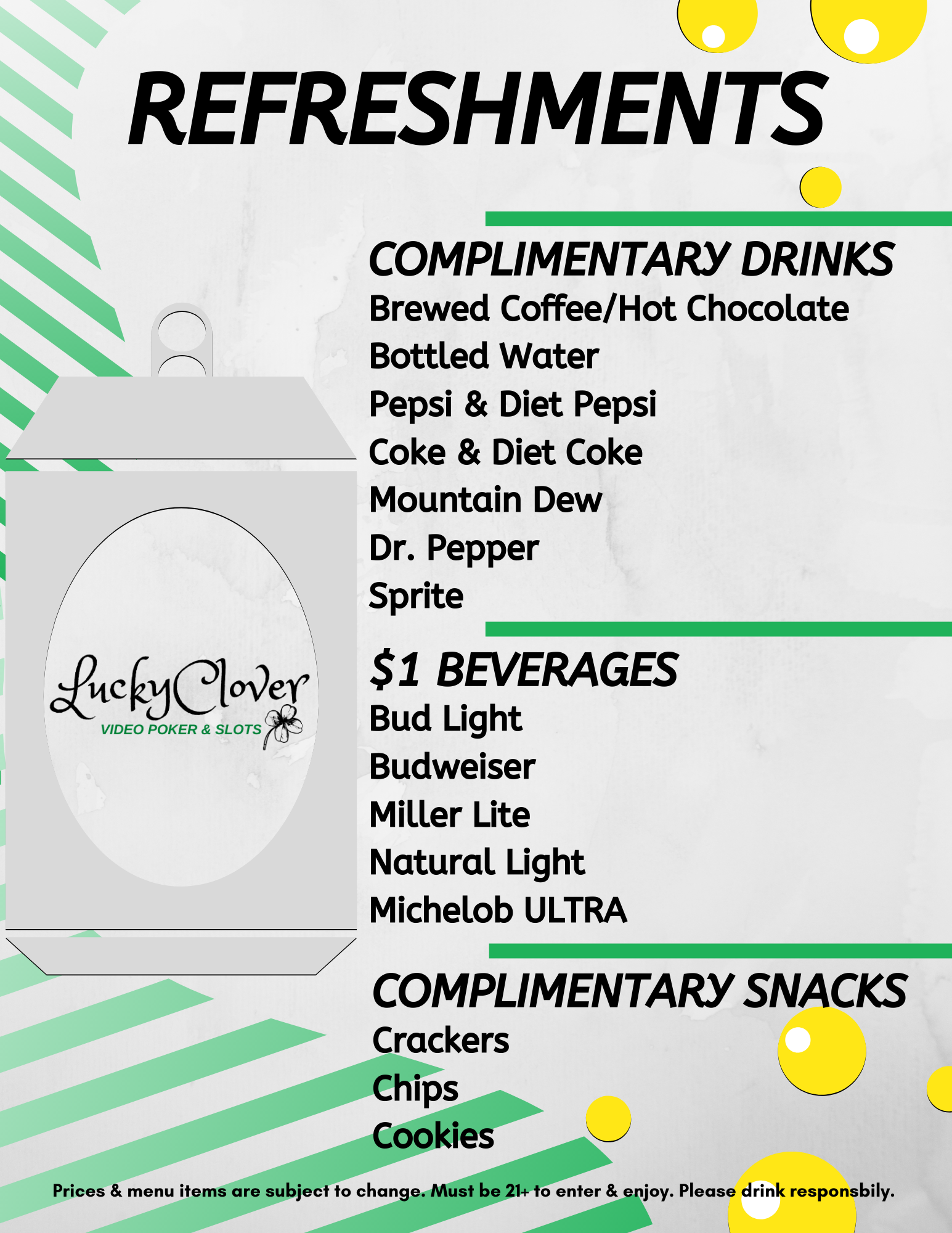 Quit little place!!..$1.50 ice cold beer and 20 bucks in the machine! Came out 180.00 ahead!!!.. gave Game attendant 50.00 .made her day and mine..???? dont forget to tip the game attendant!!. Its only right!!
