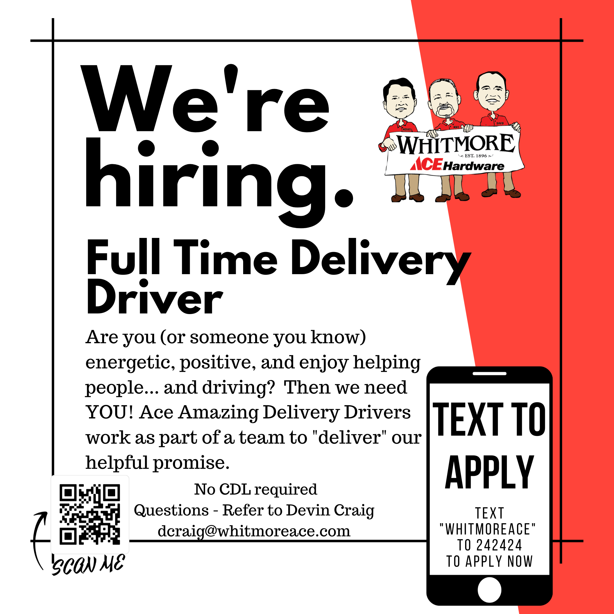 Whitmore Ace Hardware is a friendly, helpful local store that feels like a family. Customers appreciate the knowledgeable and friendly staff, who go the extra mile to help find exactly what they need quickly. The store offers a wide variety of items, including many that are unexpected at a hardware store, and provides great sales and competitive prices. Visitors often mention how easy it is to shop there, with a smooth process for getting in and out, and convenient parking. The staff's personal service and attention to customers make it a favorite in the community, with many choosing this location over larger chain stores like Walmart or Lowe’s. Overall, Whitmore Ace Hardware is known for its welcoming atmosphere, helpful team, and quality products, making it a trusted neighborhood destination for hardware needs.