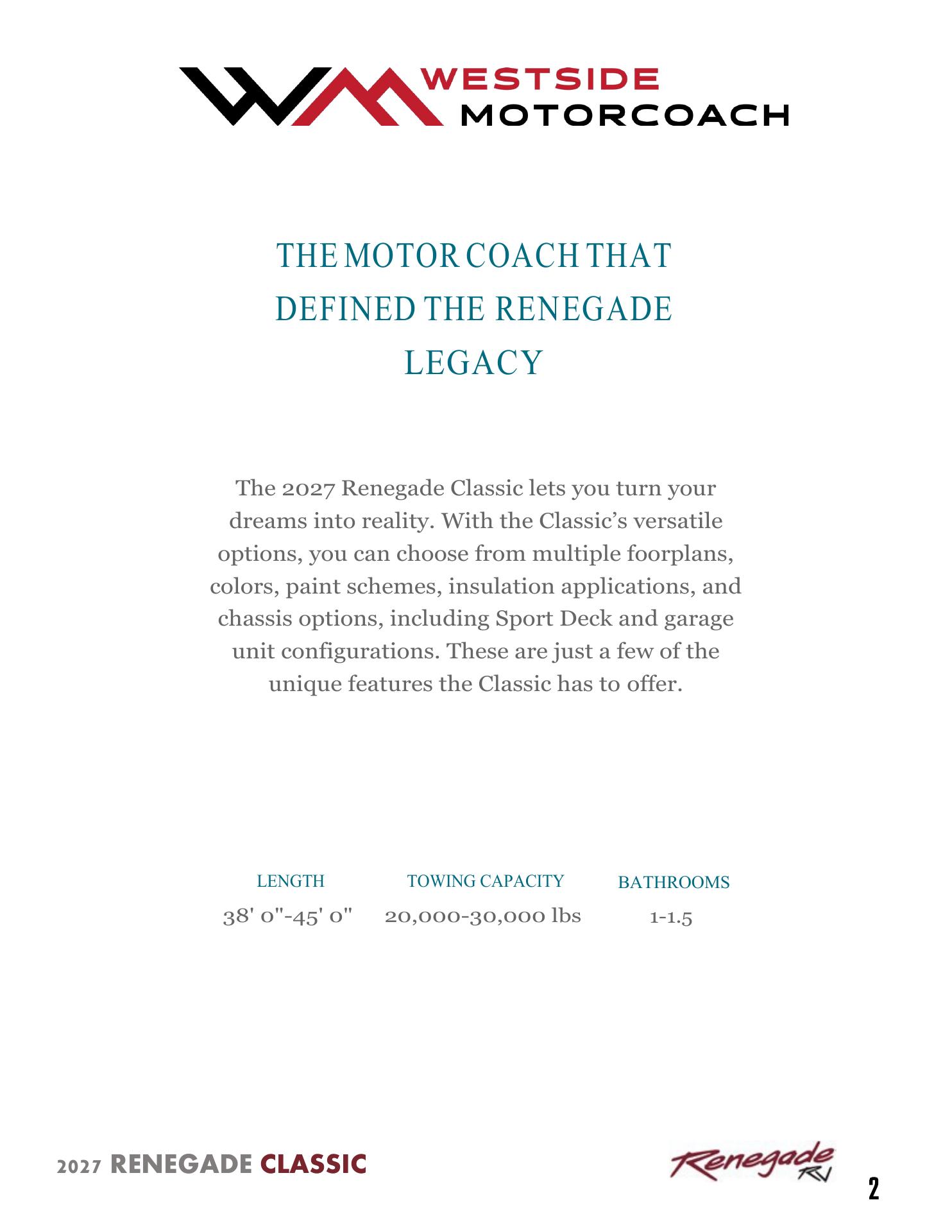 Westside Motorcoach is the place to go for purchasing Renegade Motorcoach! Bob and Kelly Dill were outstanding, professional, and beyond helpful with our purchase. Highly recommend!!!