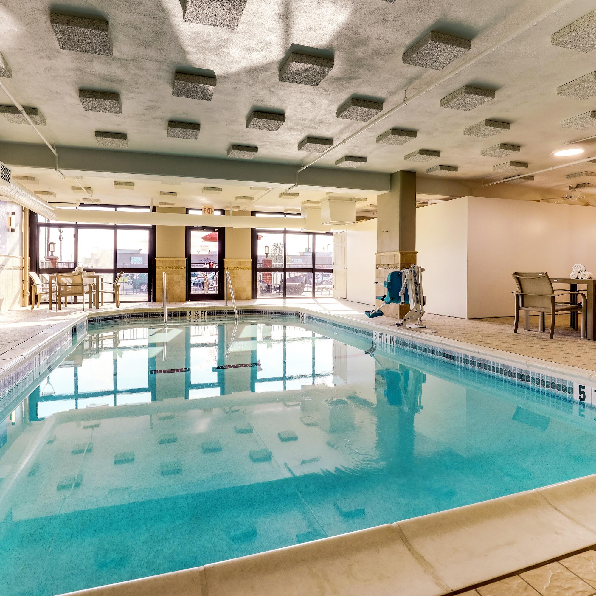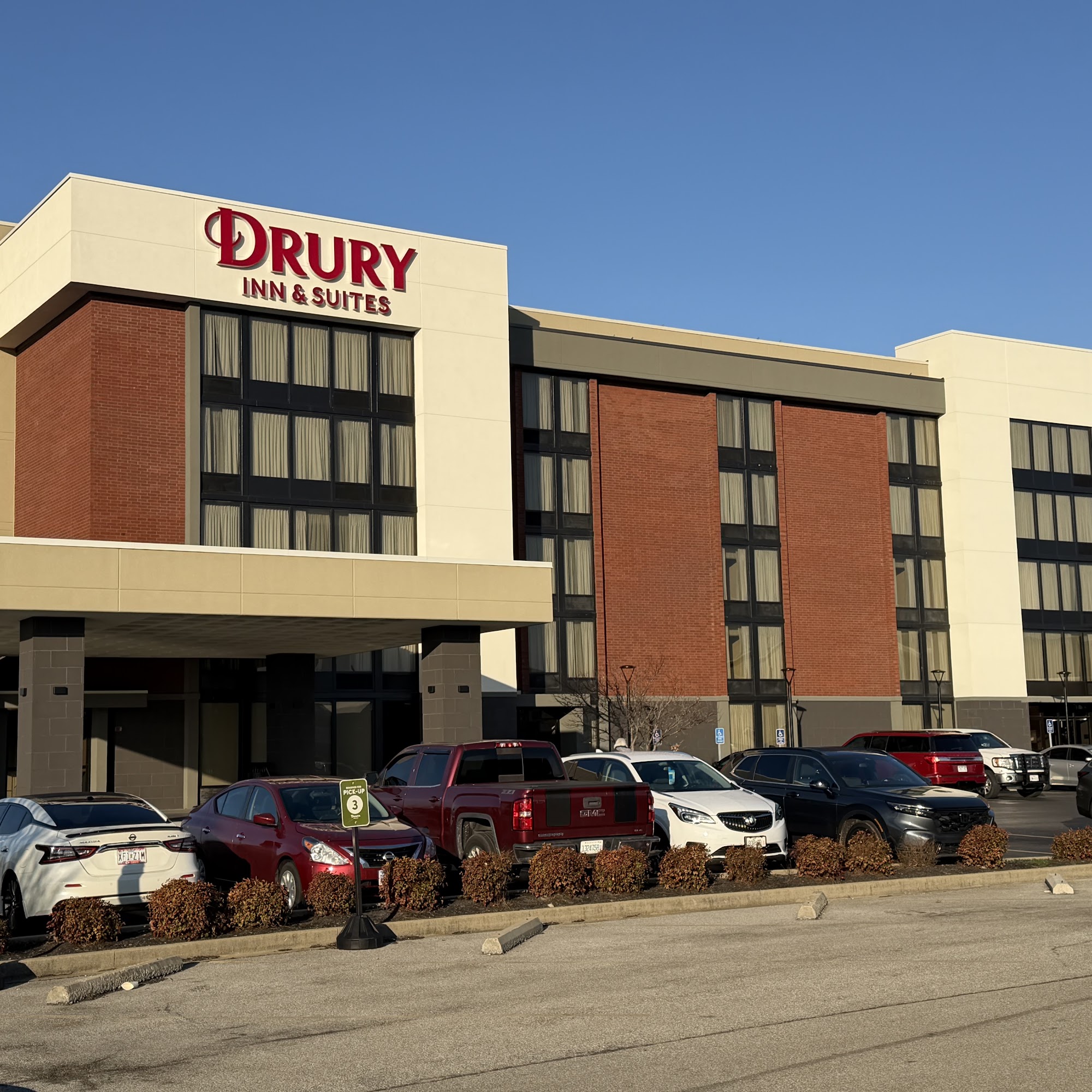 Drury Inn & Suites Marion is pet friendly and offers hot breakfast and dinner/drinks for extra. The indoor pool and spa are available, and laundry for guests costs $4 total per load. The staff was wonderful and friendly. The pool area and hot tub area was clean and well maintained. Rooms were nice, beds were comfy, though small. Breakfast was great with scrambled eggs, biscuits, fried potatoes, tortillas, and more. Dinner offered biscuits with pulled pork, beans, and mac and cheese, and there were 3 free happy hour drinks. The location is good. Some guests said the bathroom is dated and the TV is small. The garbage truck was loud at about 5 a.m. Most pillows smelled like someone’s head. Overall, quiet, friendly, and clean, a solid hotel for the price.