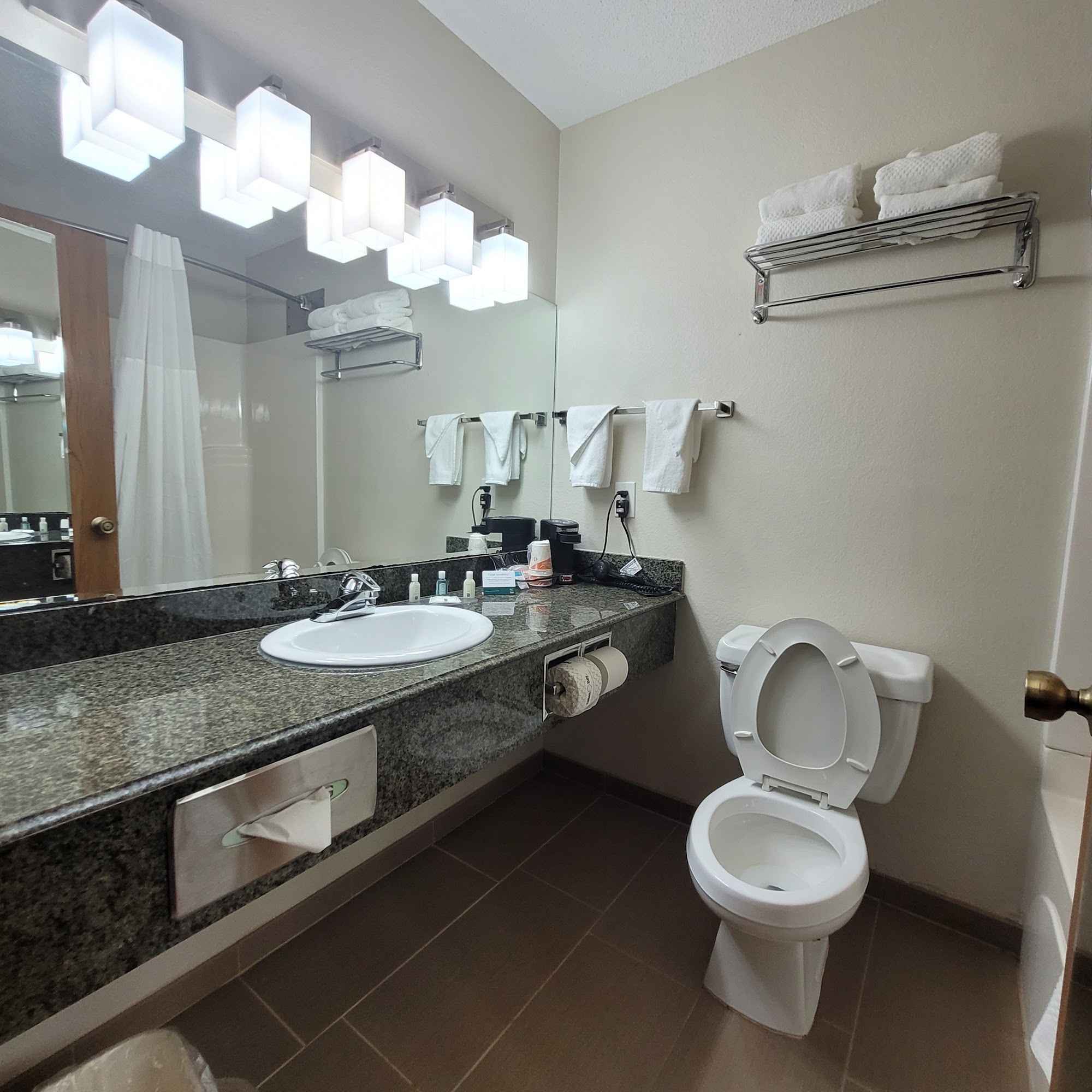 Quality Inn & Suites offers a pleasant stay with clean rooms and friendly staff. Guests appreciate the nice ambiance and efficient check-in process, often mentioning the accommodating nature of the staff. While some reviews noted issues such as a need for better cleaning in certain areas and limited breakfast options, many found the breakfast enjoyable with a good variety. The hotel features comfortable beds, a clean pool, and a workout center, making it a convenient choice for travelers. Overall, visitors recommend Quality Inn & Suites for its excellent service and clean facilities, particularly highlighting their positive experiences during longer stays.