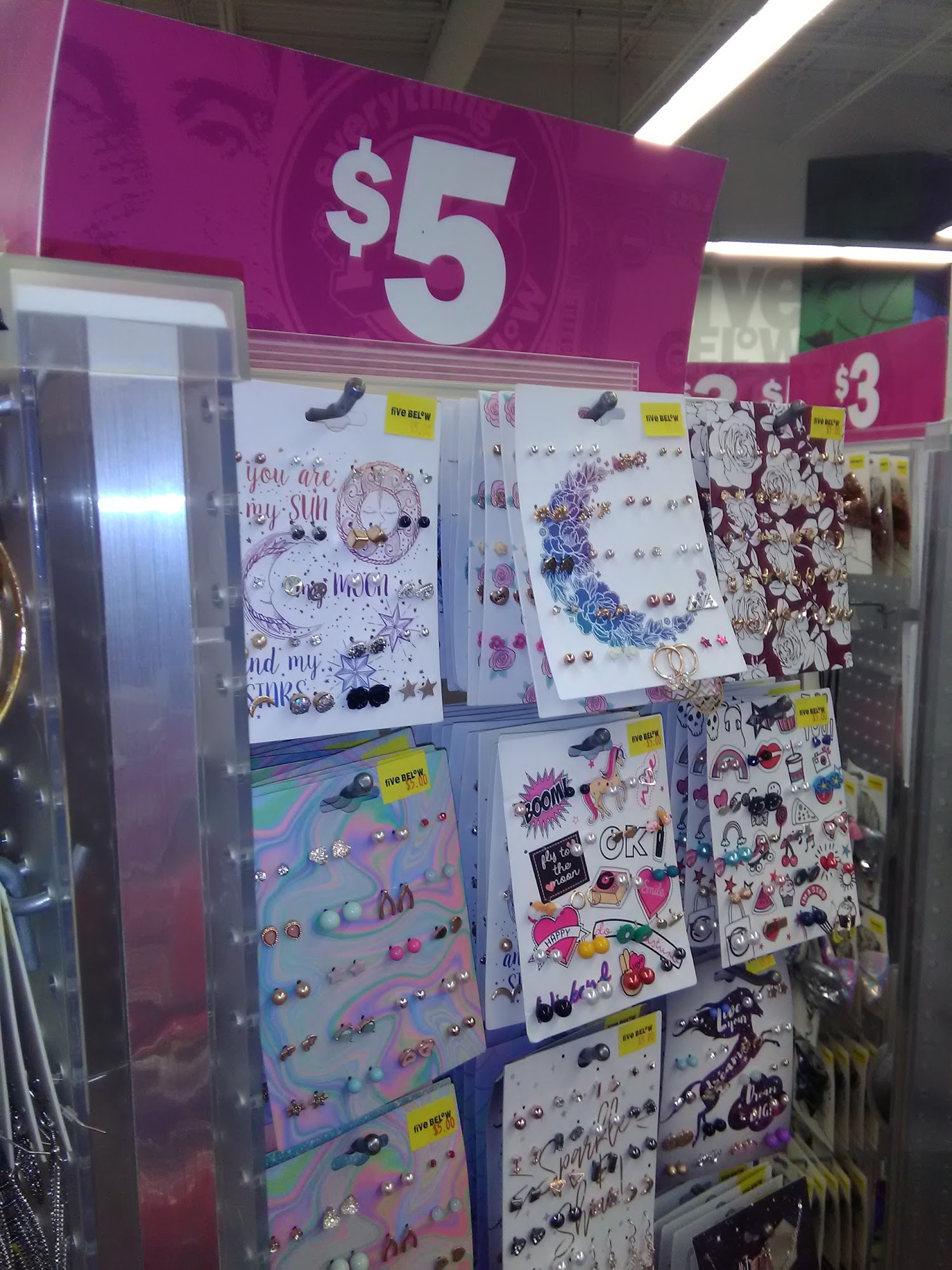 Five Below is a value retailer offering trend-right, high-quality products loved by tweens, teens and beyond, with most items priced between $1 and $5. The store provides an amazing experience across worlds like Style, Tech, Candy, and Party. Customers find many things, especially electronics like charger contacts, at a very low price. The candy selection is outstanding and the cookies are amazing. One location features a new, better space with more room allowing for a greater selection of goods, including the over five dollar zone which has more electronics, though still at a relatively cheap price. The addition of multiple self check outs is nice, making it so there is never really any line. It is a shop where customers can have lots of fun, though one should be aware of potential Sunday hour discrepancies.