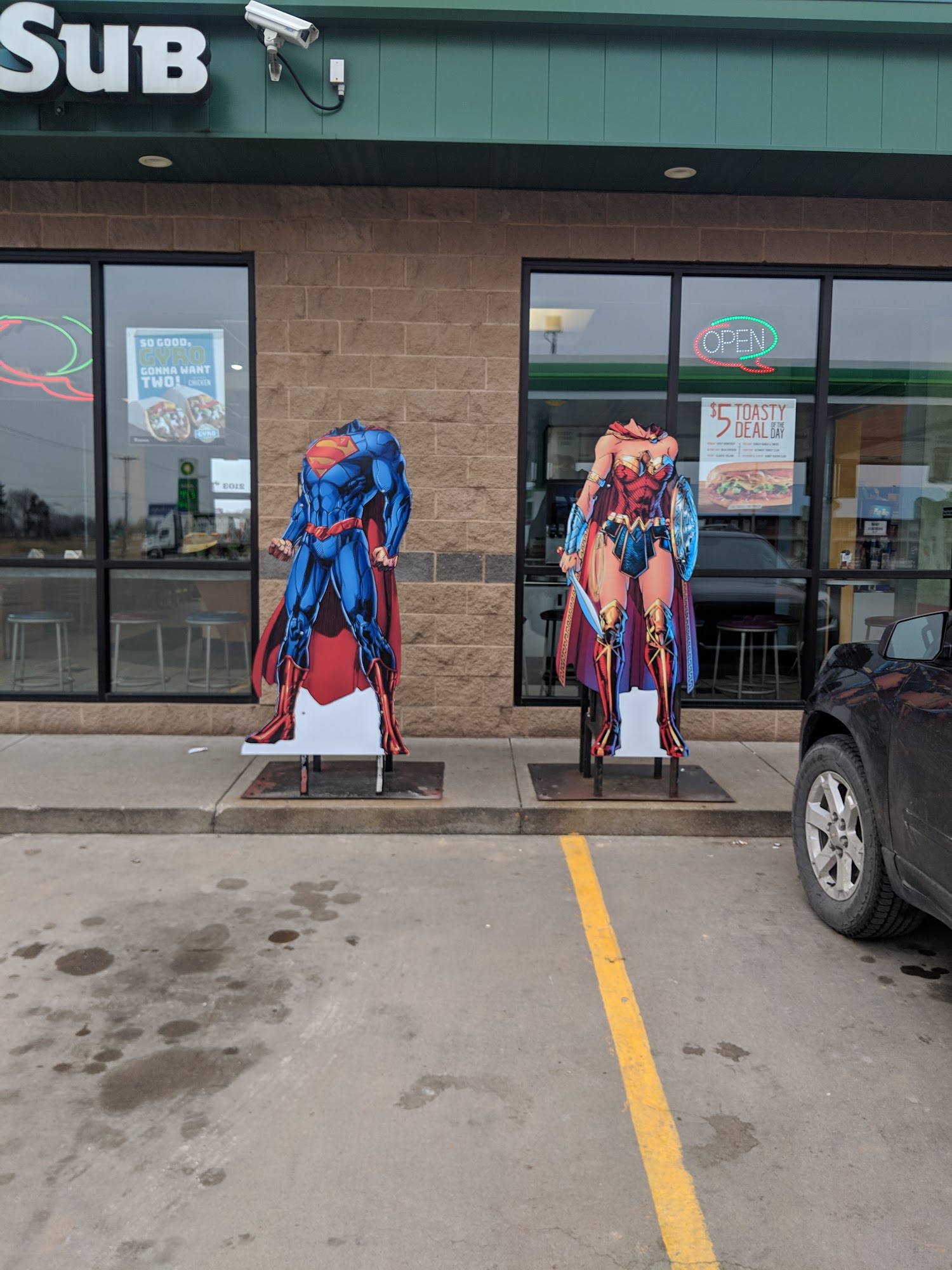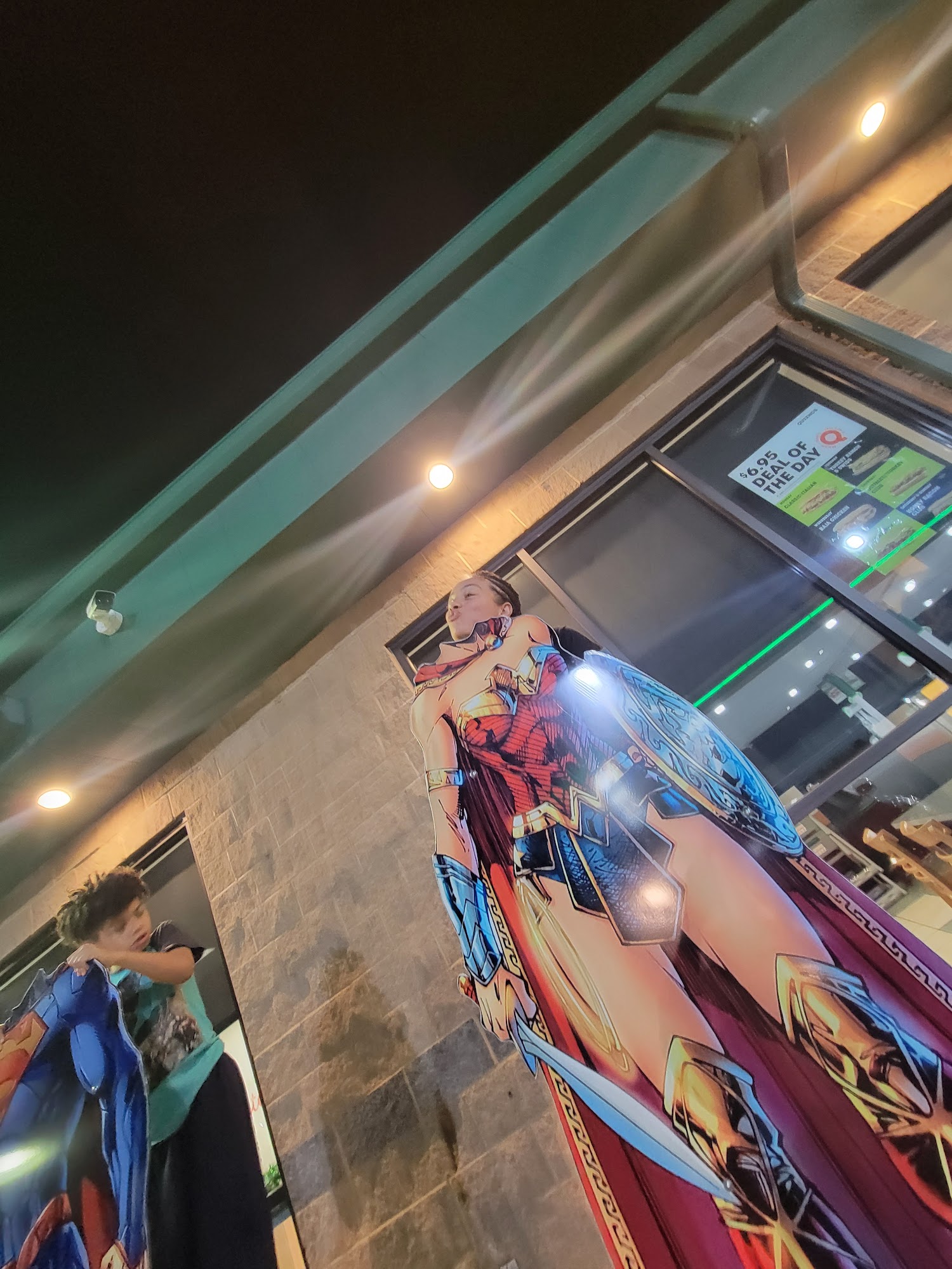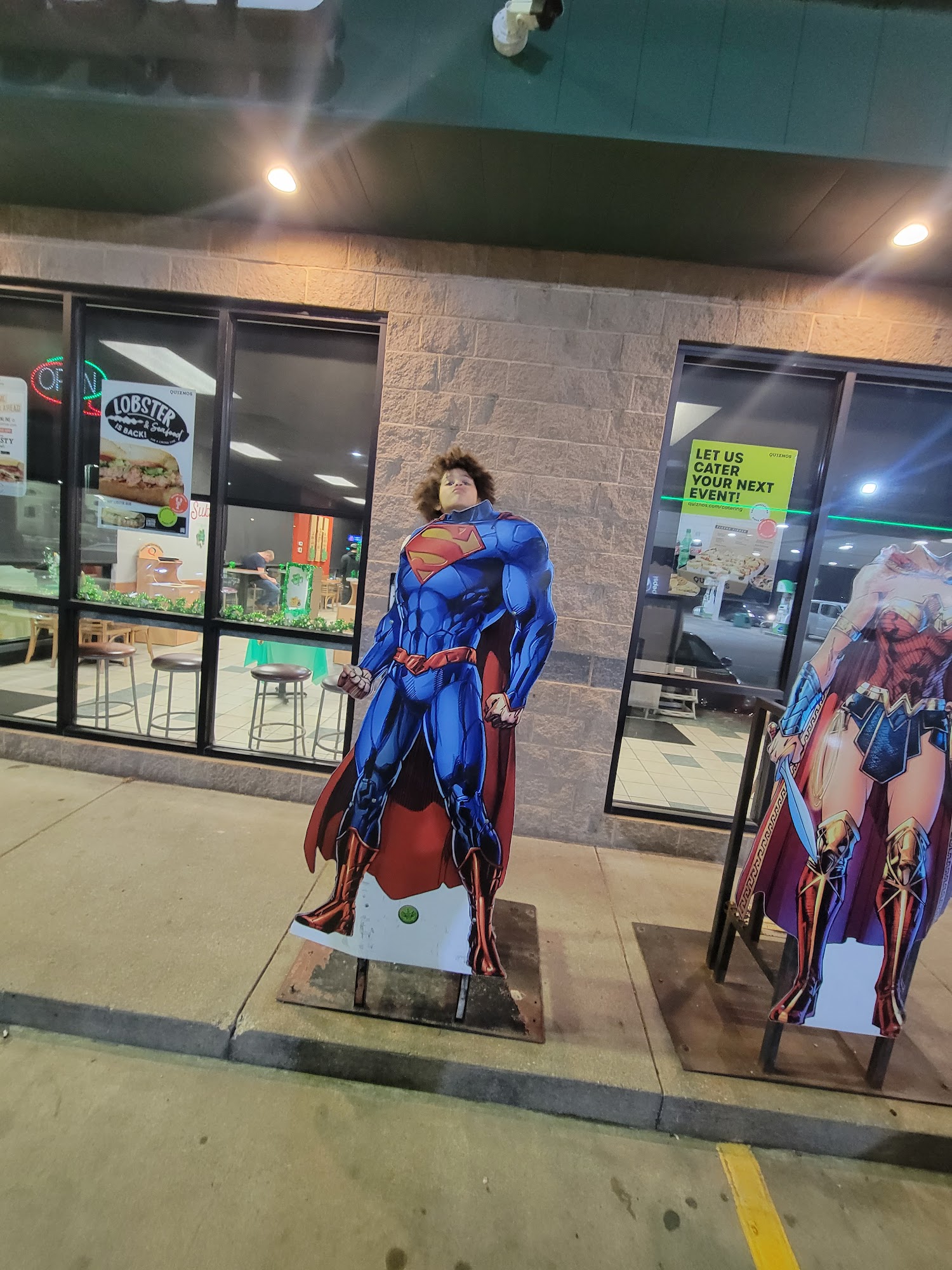 Truck Stop is a fun and friendly place to visit while traveling through. It offers a great variety of snacks and souvenirs, especially with its action figure theme that celebrates Metropolis. The staff is always helpful, making every stop enjoyable. Guests can enjoy delicious food options, including great sandwiches from Quiznos and tasty breakfast items like biscuits and gravy. There are also fun photo opportunities with Superman and Wonder Woman cutouts. Many travelers make it a point to stop here, whether for refills on drinks or to stretch and relax before continuing their journey.