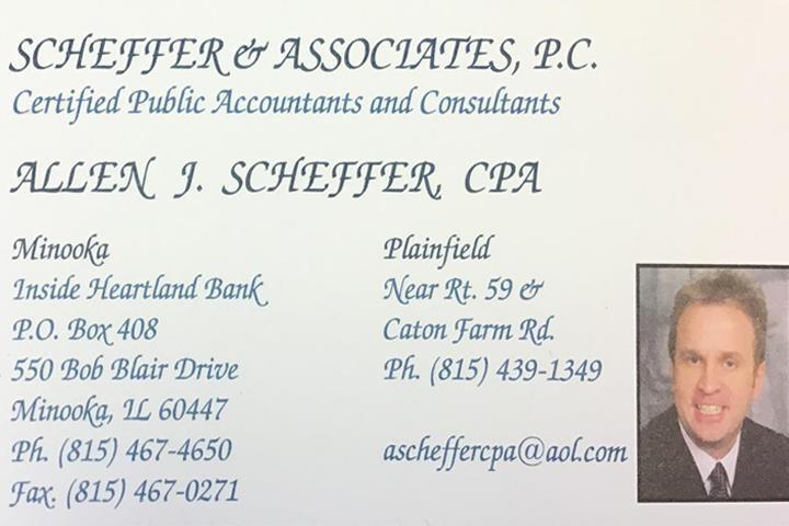 Allen J. Scheffer, CPA is a full-service accounting firm located in Minooka, IL. Our team of experienced professionals specialize in Tax Preparation and IRS Auditing Assistance, as well as offering CPA, Business and Individual Consulting, Tax Planning and Preparation, Payroll, Bookkeeping, and Corporate Services. We also provide Financial Services, Consulting and Planning. We have over 30 years of experience in the accounting industry and are committed to providing our clients with the highest quality of service. Our team of professionals are dedicated to helping our clients reach their financial goals and provide them with the best possible solutions for their business needs.