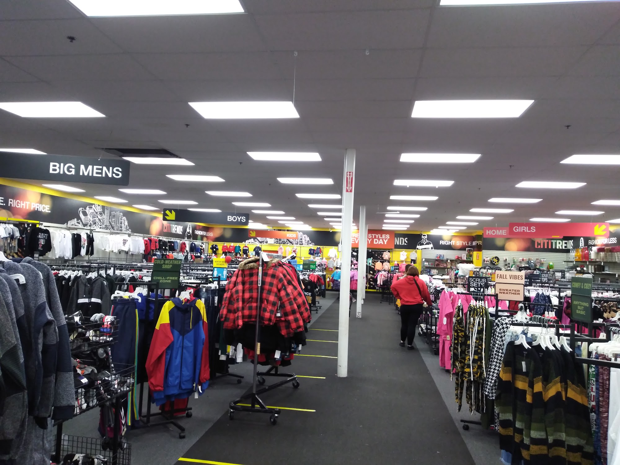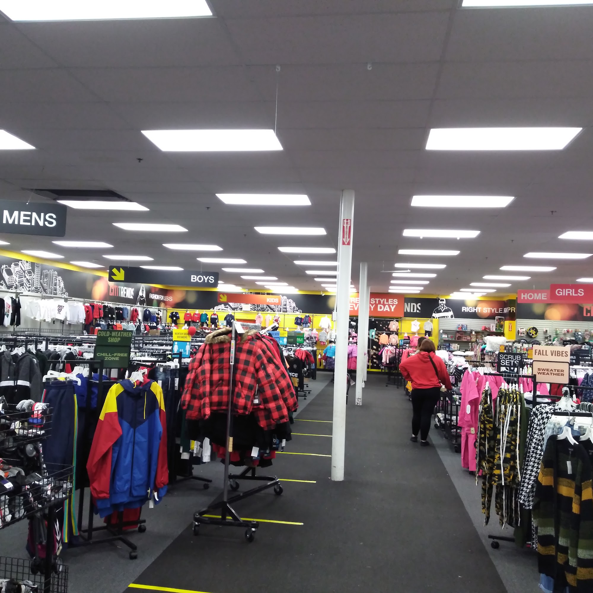 Went in due to the sign on window saying hundreds of product at 9 99 yet I never seen any of that. The big and tall section is horribly small and they need to make a bigger area for big and tall and have more cloths to choose from. No shirts for big and tall except for plain black. No jeans either