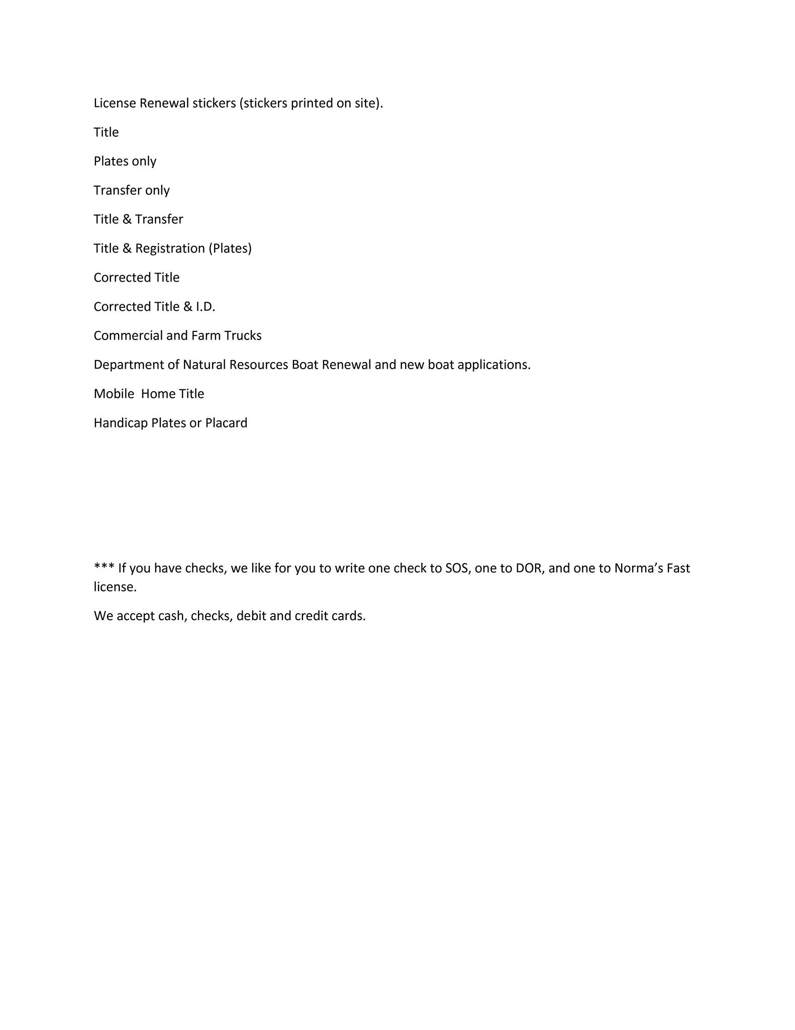 Norma's Fast License Inc is a trusted provider of vehicle title, plate, and sticker services in Illinois. The business caters to a wide range of vehicles, including cars, trucks, motorcycles, trailers, and boats, as well as commercial, private, and farm vehicles. Customers praise the exceptional professionalism and knowledge of the staff, who are able to guide them through the process and ensure a smooth and efficient experience. The business is known for its friendly and helpful customer service. Customers have reported that the staff is polite and accommodating, even when the office space is a bit small. The owner, who took over the business around 4 years ago, is said to be actively involved and engaged with the customers. Many customers have expressed their satisfaction with the services provided and have stated that they will be returning to Norma's Fast License Inc in the future. Overall, Norma's Fast License Inc is a reliable and customer-focused business that provides a wide range of vehicle-related services with a commitment to excellence and customer satisfaction.