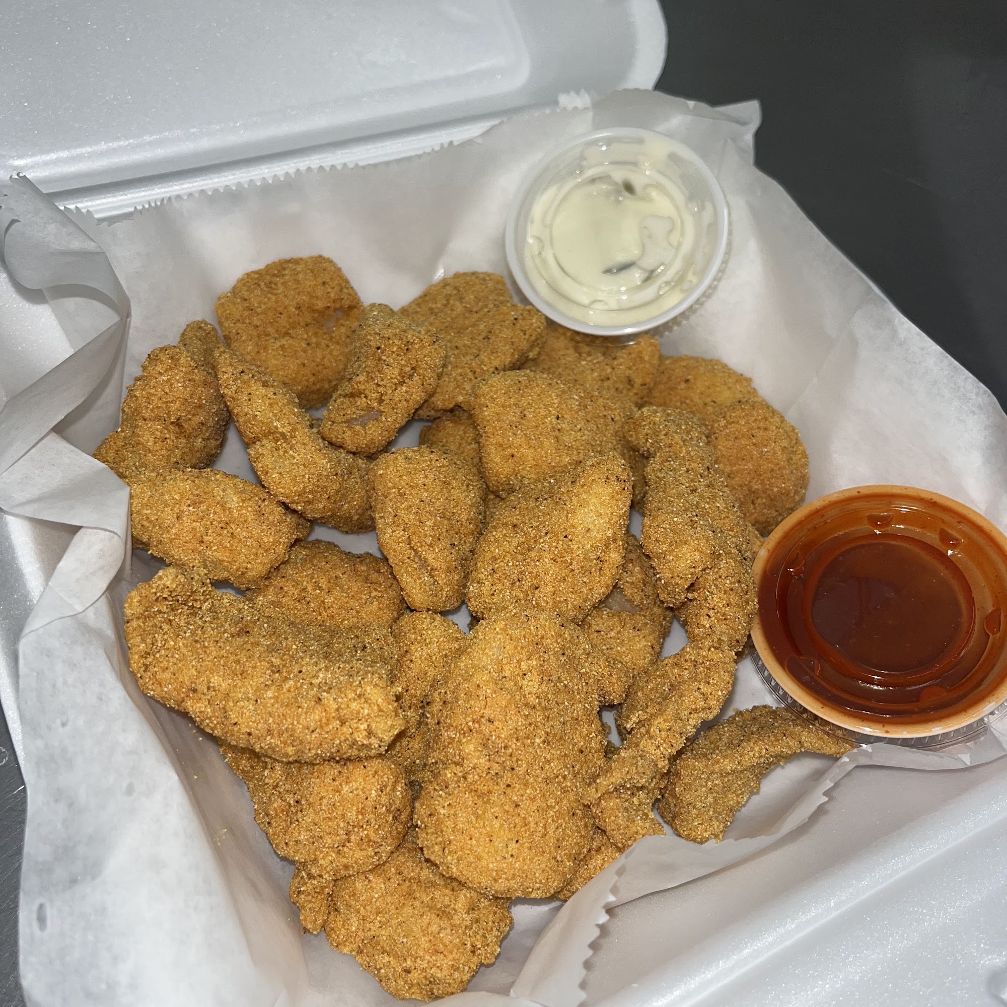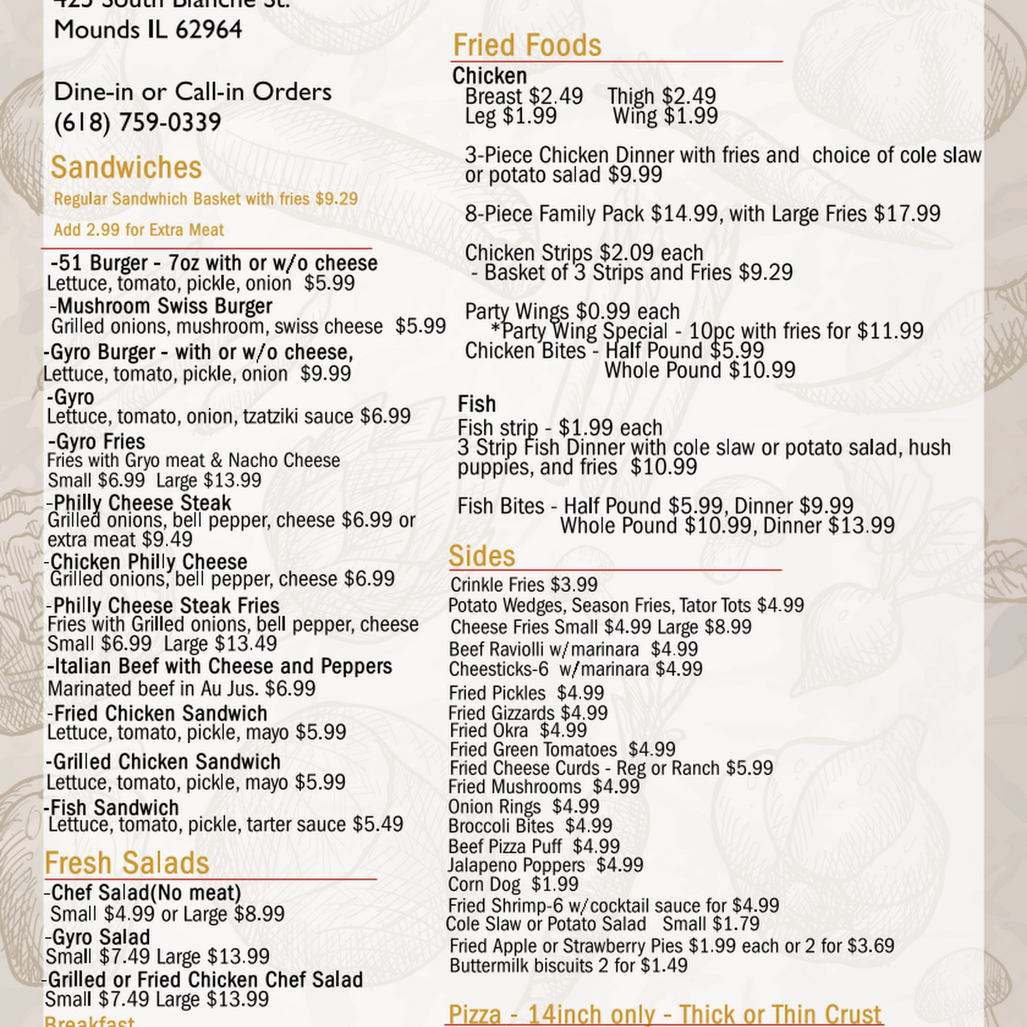 Cain't beat the fish and chip dinner -- -- yummy! It's a call in and drive thru only, not long of a wait, try it yool like very much!