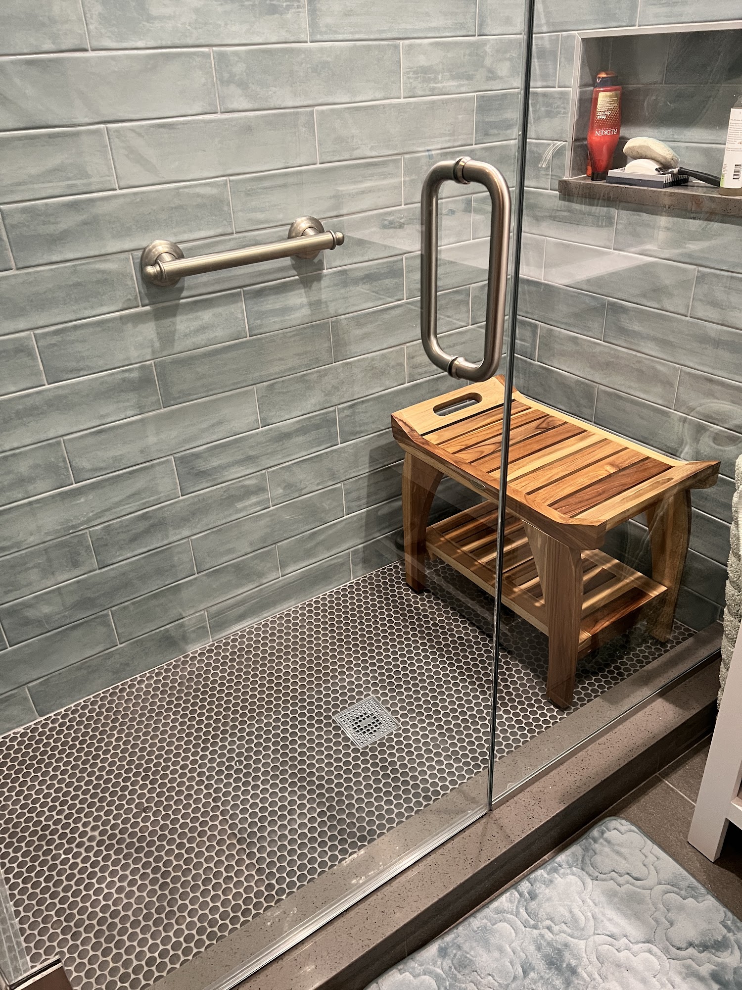 Beautiful tile work and design. Matched granite threshold to floor and carried it into base of niche. Excellent painting and many thoughtful touches.Services: Tile work installation