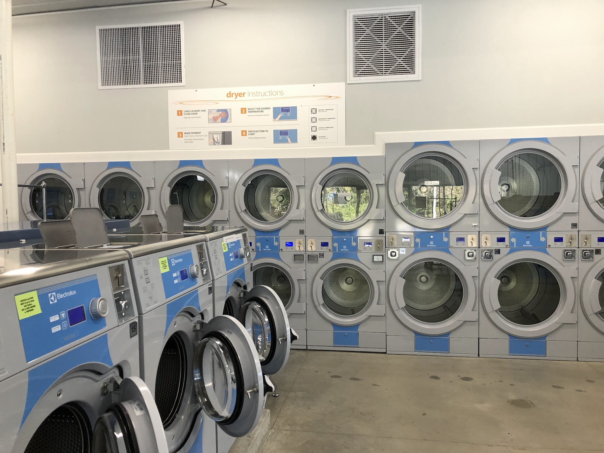 Very clean laundromat it even has an ATM to get cash out for quarters. It mentions about drop off laundry service as well