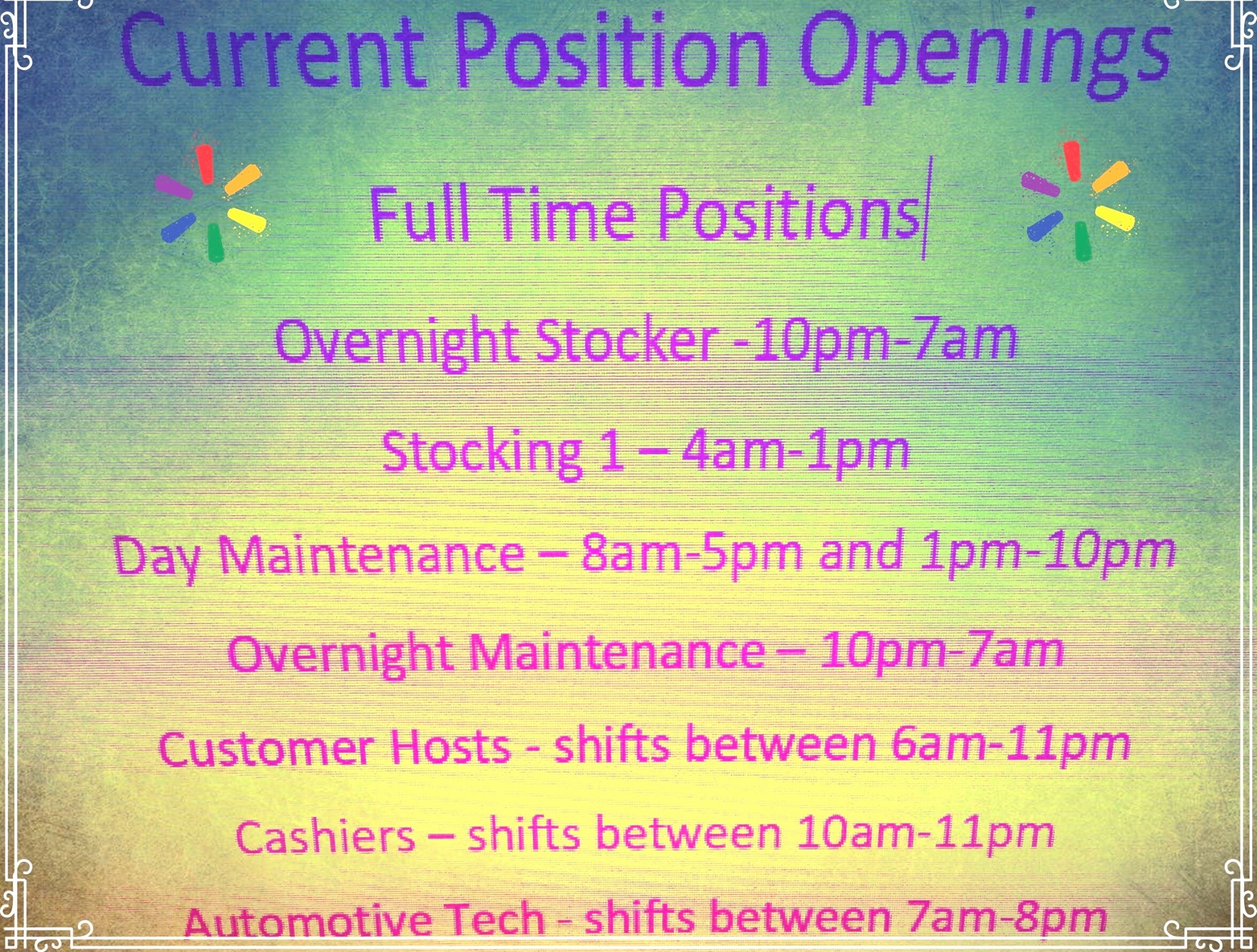 I love the people who work there. The door greaters are absolutely the best they just make ya feel rt at home. All the staff are helpful kind courteous. They're the best