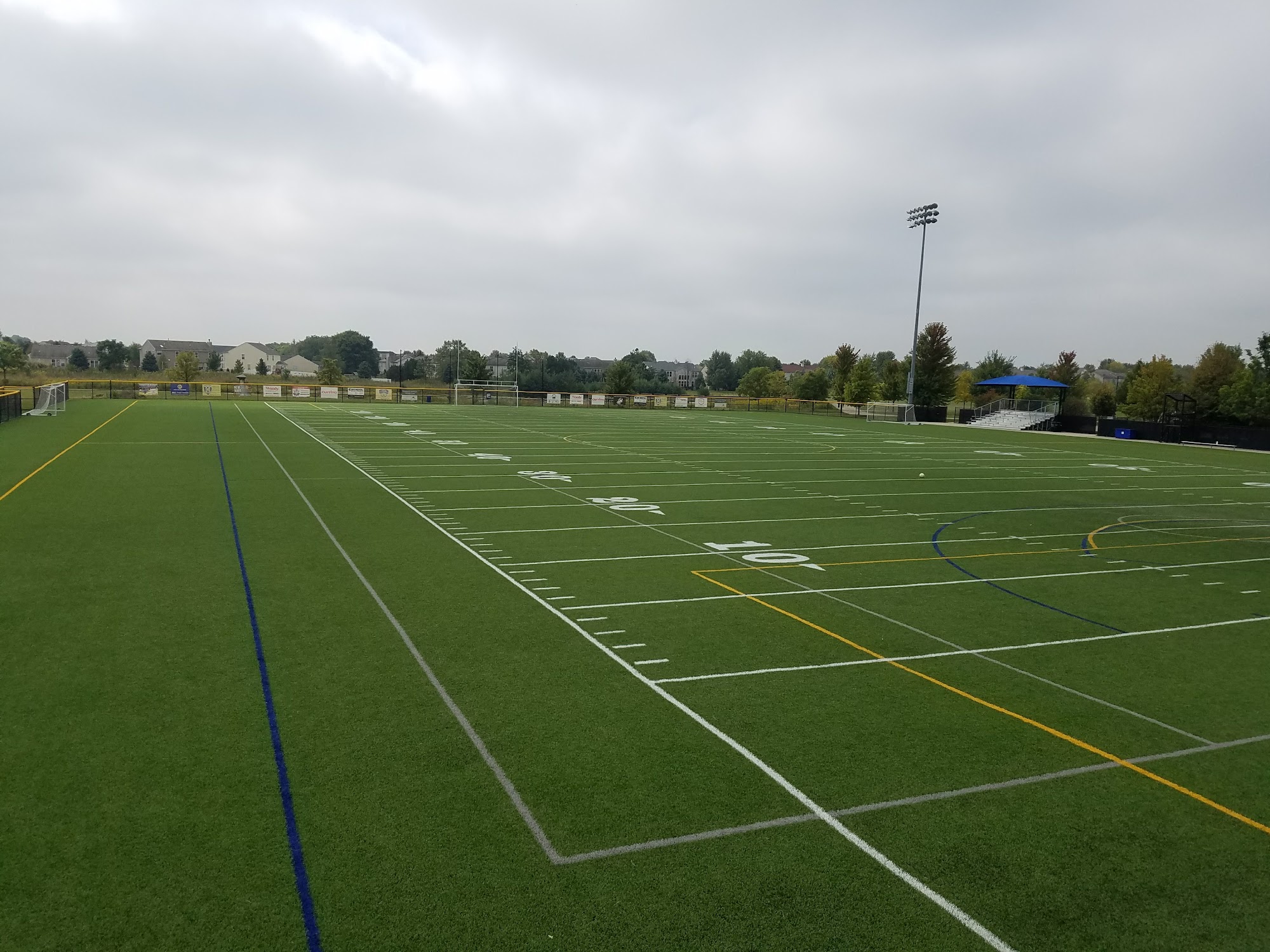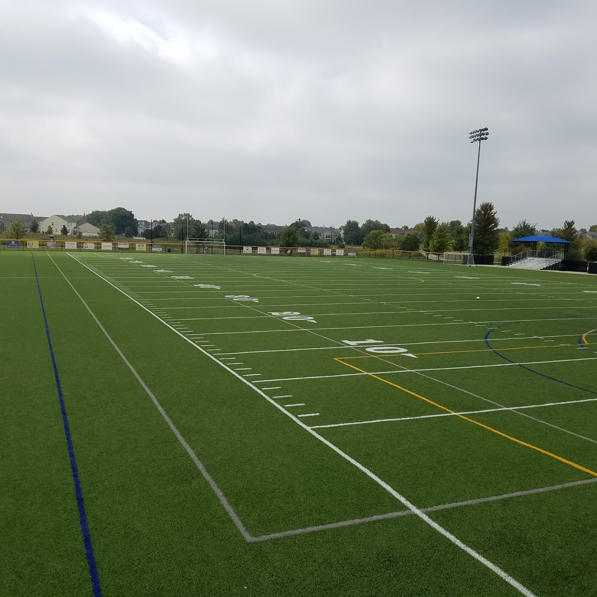 Commissioners Park is a wonderful and spectacular place for family fun. It has nice facilities and plenty of outdoor space, including soccer fields, football fields, a turf field, basketball courts, a roller rink, and cricket fields. There are miles of trails through wooded areas, grasslands, and ponds. The park is safe and kept very clean, with good restrooms, a covered area, and quite adequate parking. It also features a very nice playground with a safety set up for kids.
