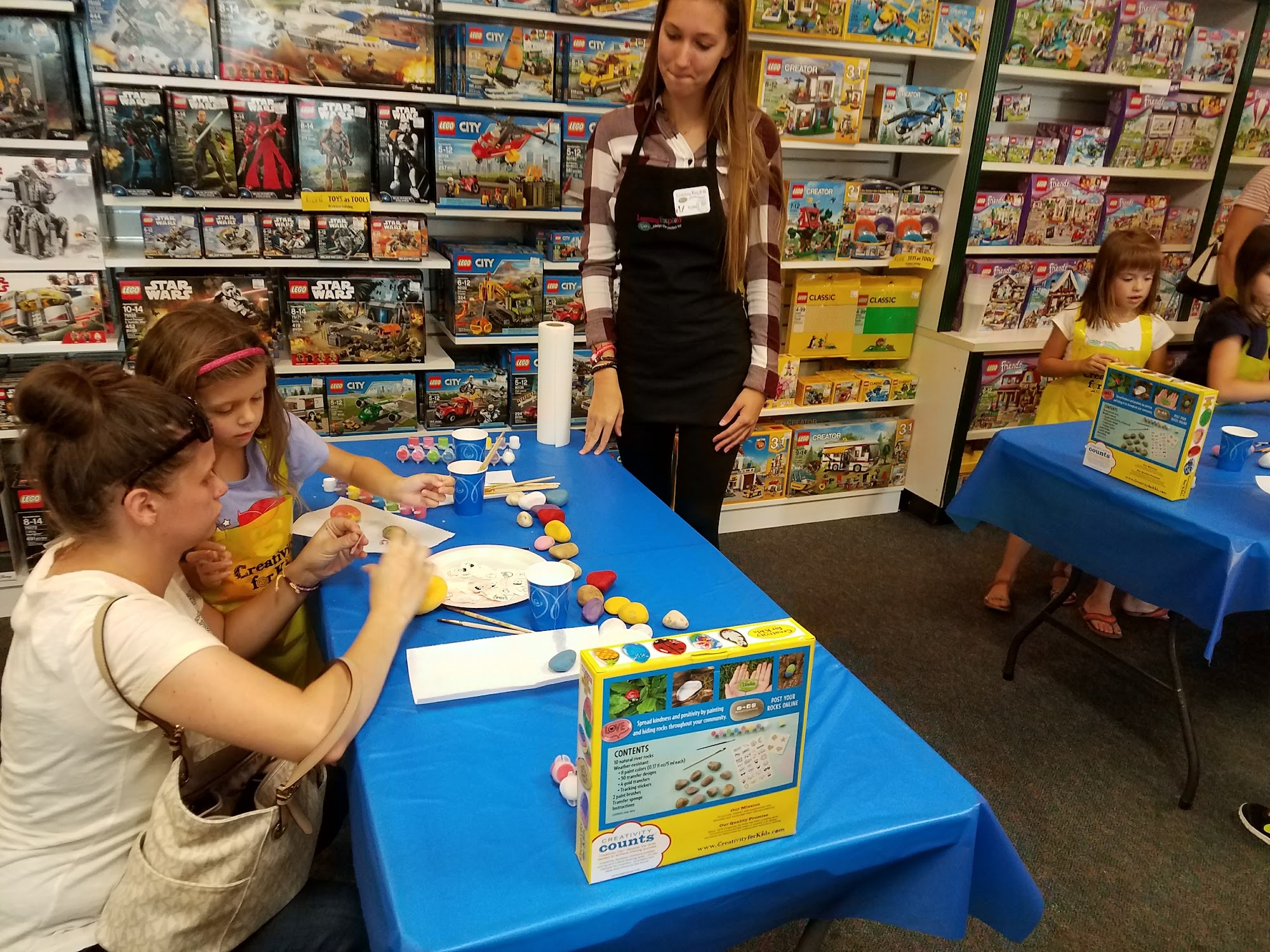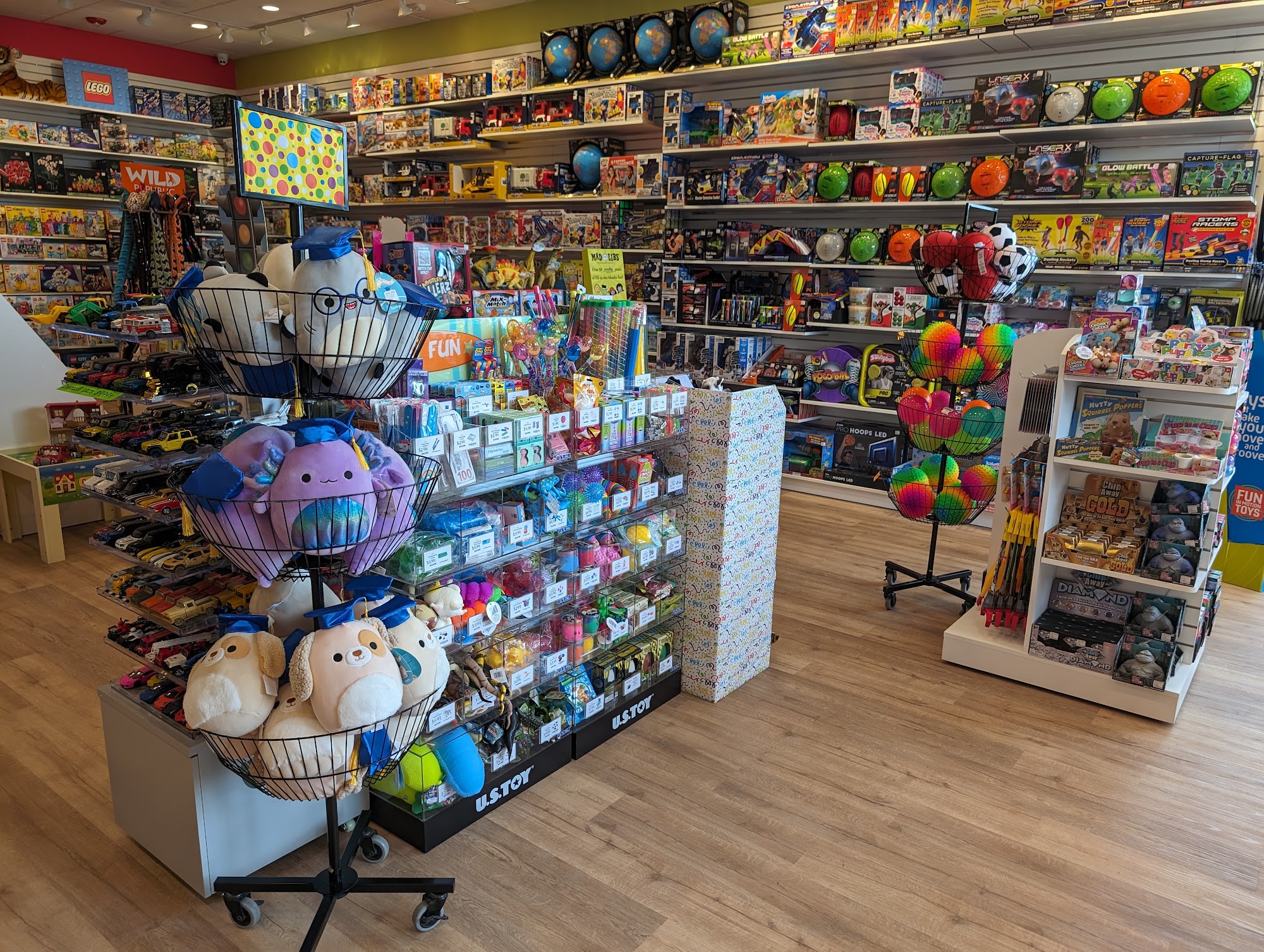The staff is very friendly! Especially with my very excited toddlers that are all over the place. We love the slime making station. Very good selection of toys for all ages.