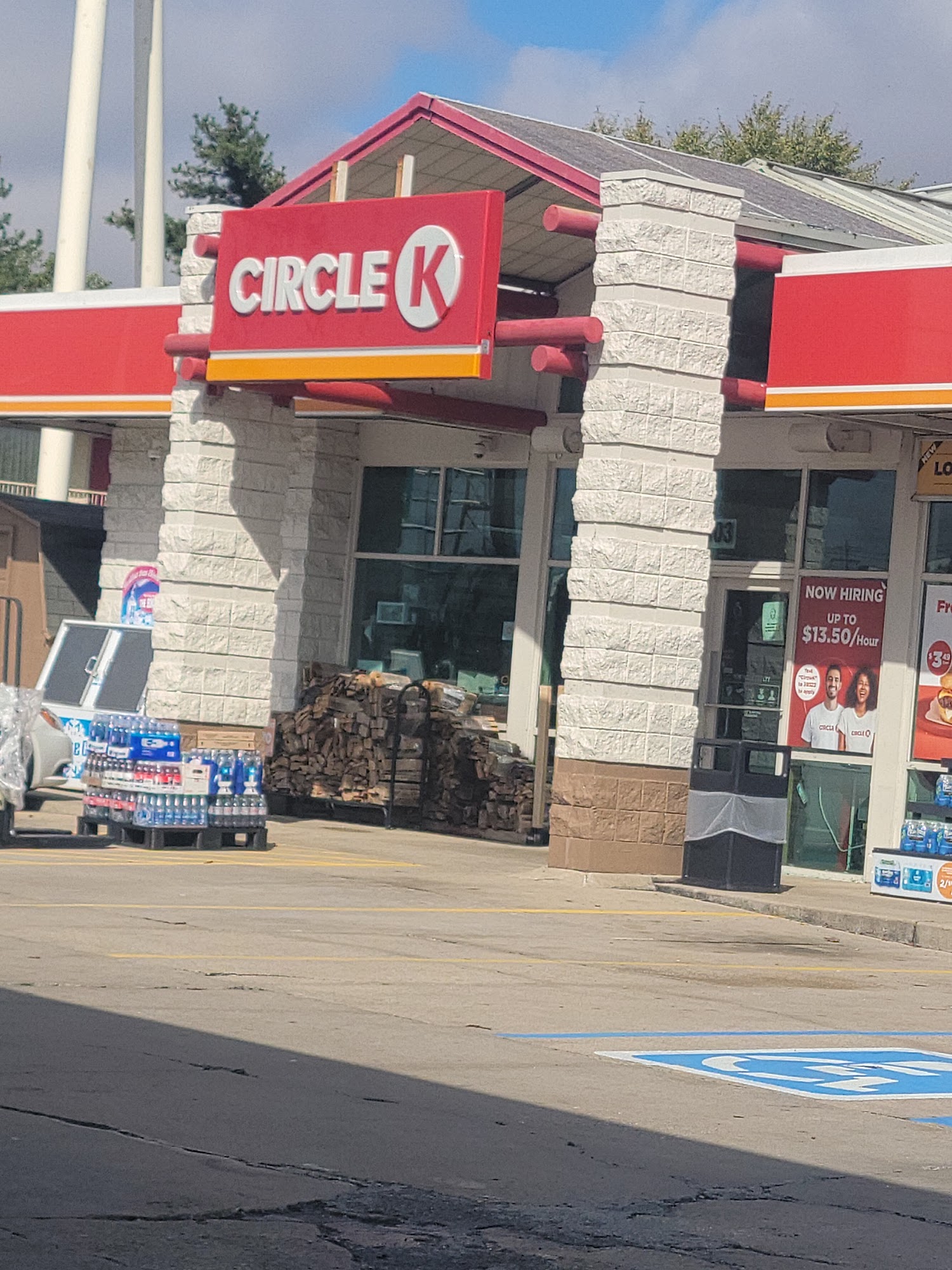 It's a gas station. Tight parking, next to a restaurant, and in a college dorm neighborhood.
