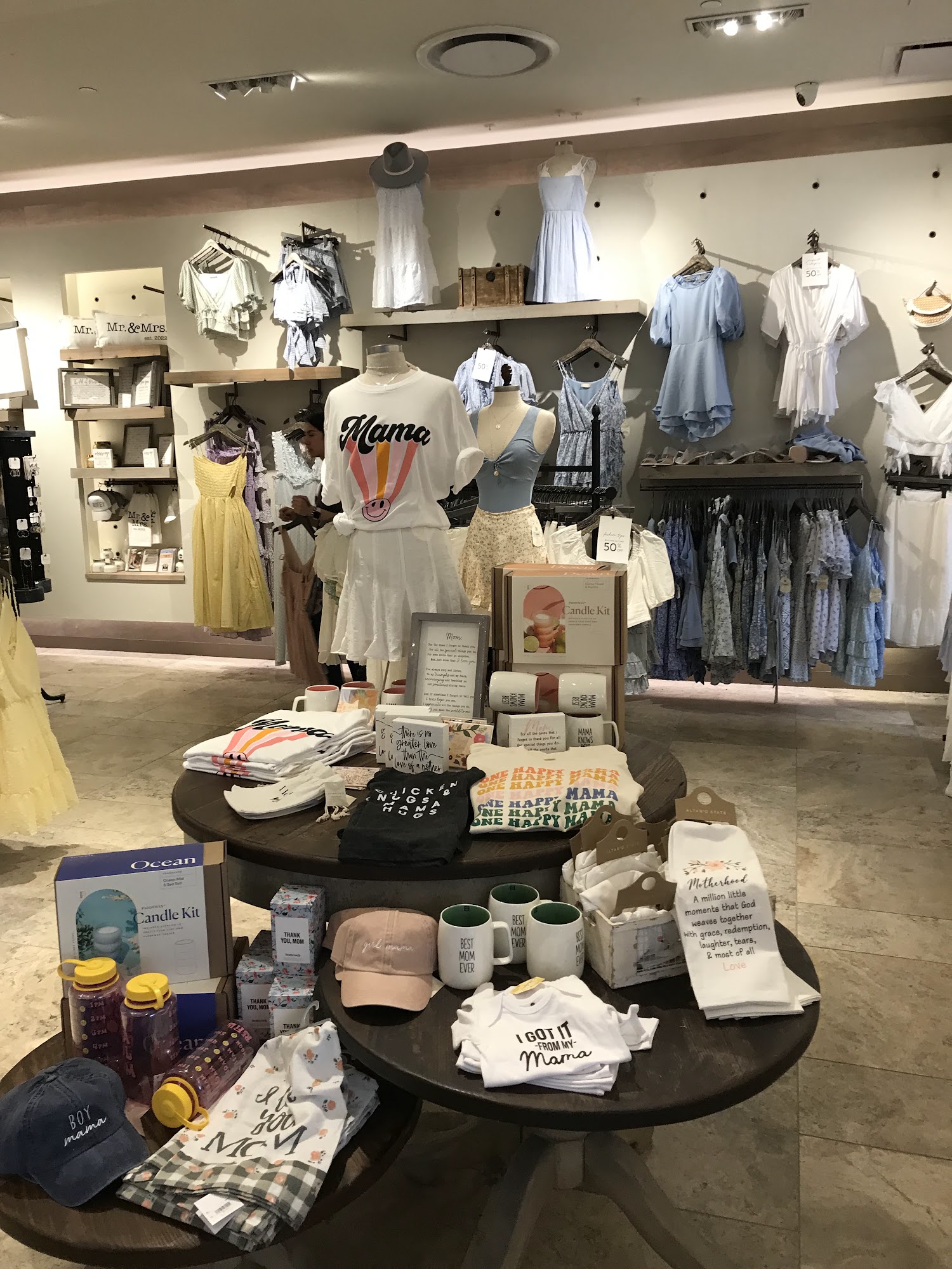 Great sweaters, candles, boots, dresses, ornaments. Perfect store ambiance.