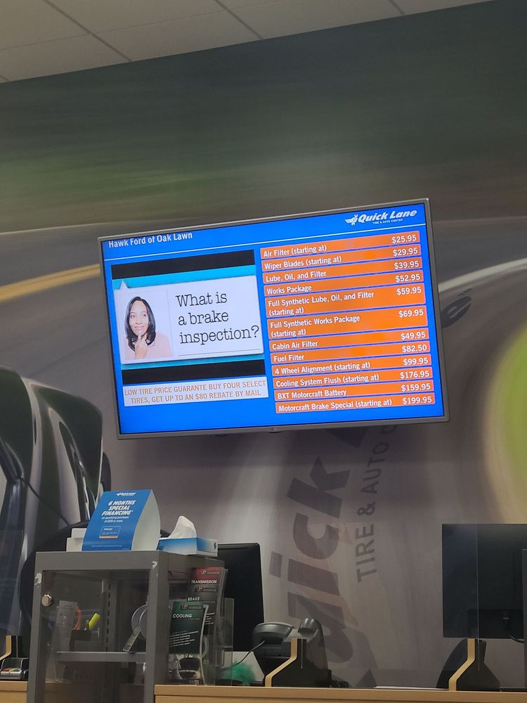 Quick Lane at Napleton Ford of Oak Lawn is known for its friendly and professional service. Customers appreciate the quick and efficient oil changes, often being in and out in about 20 minutes, with staff valuing clients' time. The dealership offers excellent customer service, with staff like Peter, the service advisor, receiving high praise for their helpfulness and professionalism. They also stand out for their convenient pick-up and drop-off service for repairs like air bag replacements, with clear communication and timely completion. Customers feel confident buying cars from honest staff such as Nick R., who helps find satisfying deals at the right price. While most reviews highlight positive experiences, some mention longer wait times, especially during busy periods, but staff generally remain courteous and accommodating. Overall, Quick Lane at Napleton Ford of Oak Lawn is a reliable place for quick service, honest advice, and quality care for vehicles.