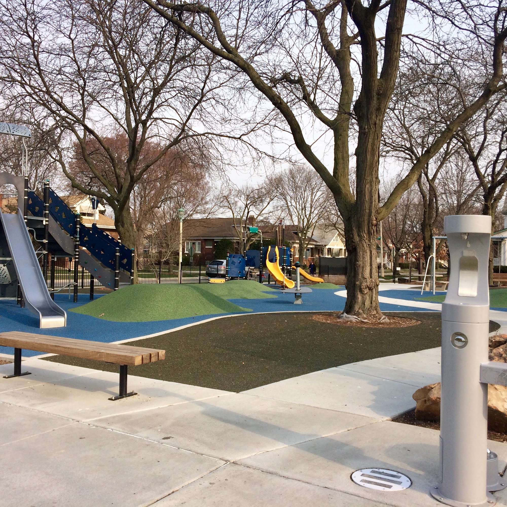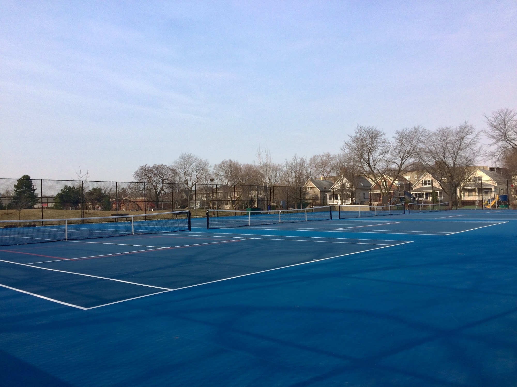 Beautifully clean park with tennis courts, ball fields, grassy areas, and a lovely play area. This place is cozy and peaceful snuggled in a great little neighborhood.
