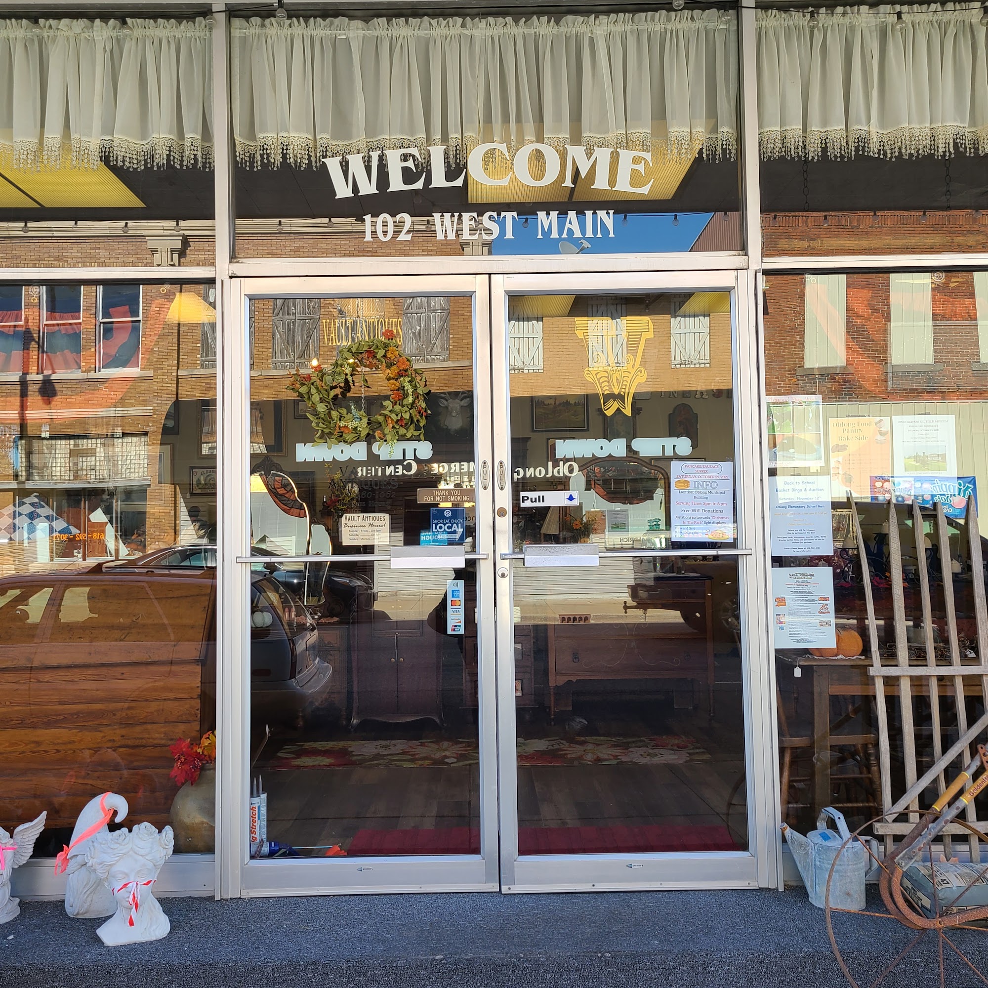 Vault Antiques is a very nice antique and gift store in Oblong, Illinois, offering a nice variety of items. It is always an interesting treasure hunt with a great overall vibe and a layout that is not too cluttered. The value varies greatly, with some items priced surprisingly low or reasonably, and others priced too high. They sell concrete yard and garden display items, some of which are hand painted in the store. Painting classes are available occasionally. The staff is friendly, nice, and helpful, providing great and friendly service. There is also a chill cat that lives there. It is definitely a shop customers are likely to visit again.