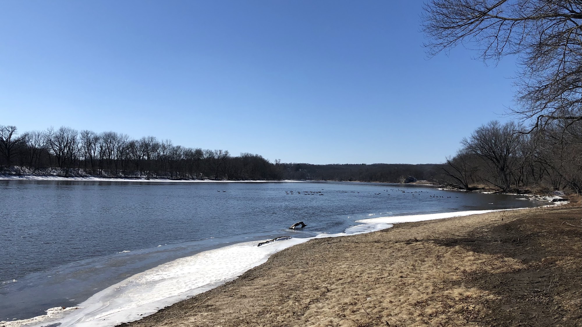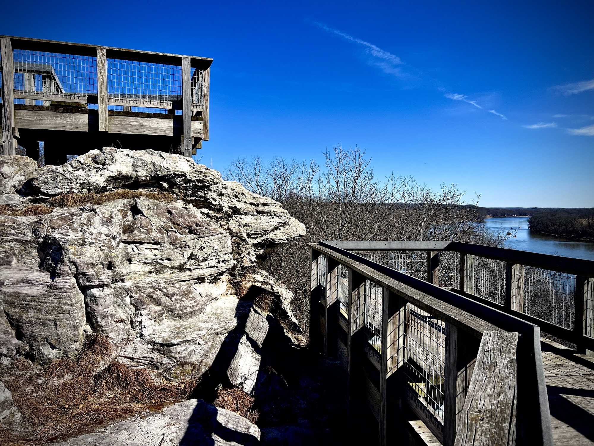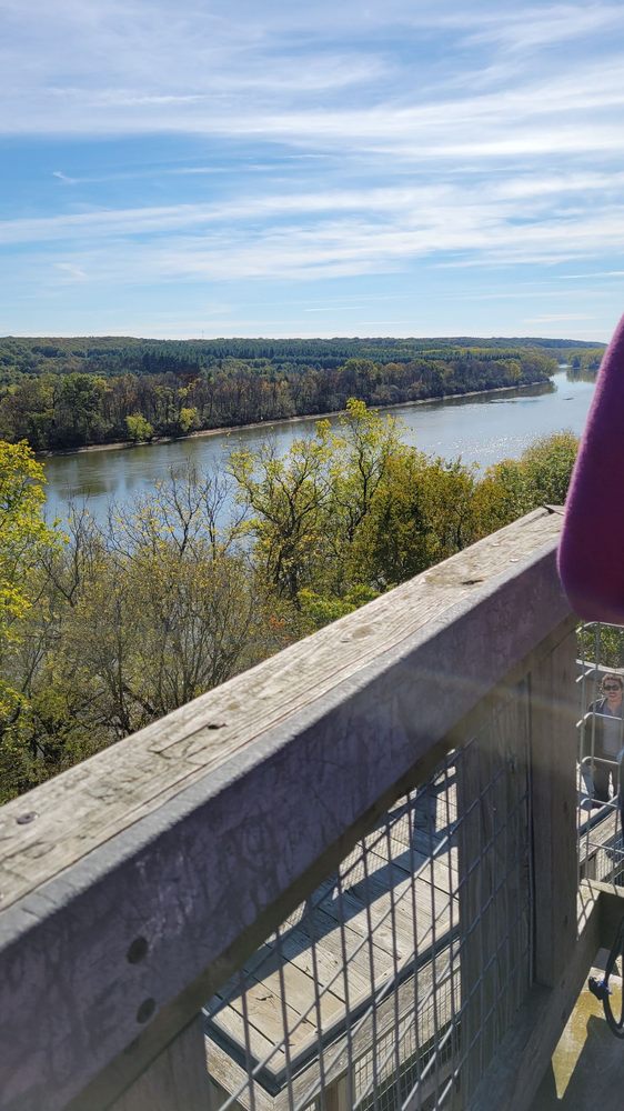 Beautiful scenic overlook of the Rock River with a well constructed staircase of 147 steps with a few boardwalks to space out the steps off the left side of the parking lot near the entrance, another nice overlook on the right side of the parking lot off the river.